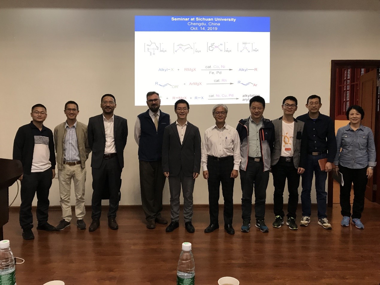 2019年10月14日下午16点,应太阳集团2007邀请,日本大阪大学Nobuaki Kambe(神户宣明)教授在化学馆321会议室做了题为 “Carbon-Carbon Bond Forming Reactions Catalyzed by Transition Metal Ate Complexes ”的学术报告。此次报告由太阳集团2007余达刚教授主持, Jason Chruma教授、曾小明教授、董顺喜教授和付海燕教授等老师及员工参加了此次报告。