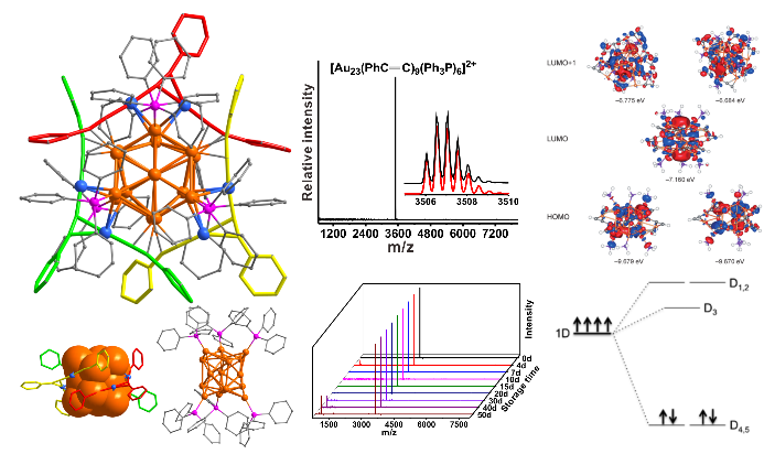 7. Xian-Kai Wan, Shang-Fu Yuan, Qing Tang, De-En Jiang*, and Quan-Ming Wang*. Alkynyl-Protected Au23 Nanocluster: A 12-Electron System, Angew. Chem. Int. Ed. 2015, 54, 5977-5980.