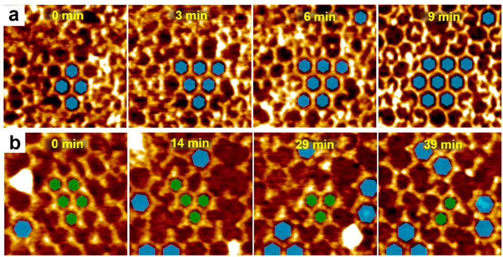 4. Gaolei Zhan+, Zhen-Feng Cai+*, Marta Martínez-Abadia, Aurelio Mateo-Alonso, and Steven De Feyter*, Real-Time Molecular-Scale Imaging of Dynamic Network Switching between Covalent Organic Frameworks. J. Am. Chem. Soc. 2020, 142, 5964. (Corresponding author and co-first author)
