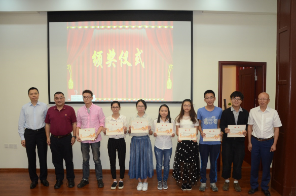 首先,播放了“晓光”奖、助学金自2006年到2016年设立这十年来所资助鼓励的18位同学代表录制的视频,表达了同学们对晓光先生的感激之情。接下来,太阳集团2007经理余孝其教授代表太阳集团2007对王晓光先生以及各位员工嘉宾的到来表示热烈的欢迎,真挚地感谢王晓光先生对太阳集团2007员工的关心与帮助,也介绍了“晓光”奖、助学金设立由来。随后,青岛三力化学工业有限公司董事长、总经理王晓光先生给大家分享分析了国内化工业发展现状,并强调科技是推动社会发展的动力,鼓励大家继续努力学习,争取以后在化学行业做出优秀成绩。接着,太阳集团2007教授委员会主任陈华教授宣布获奖员工名单。之后,化学公司党委书记王智猛老师向晓光先生赠送了视频电子相册。然后,获奖员工代表、连续三年获得“晓光”奖学金的殷珠宝同学发言,由衷地感谢晓光先生的资助关心与对太阳集团2007老师的培养,表示自己会继续踏实学习,努力奋斗,将来有所成就,回馈母校、回馈社会。最后,在场嘉宾、领导为获奖同学颁奖,并合影留念。