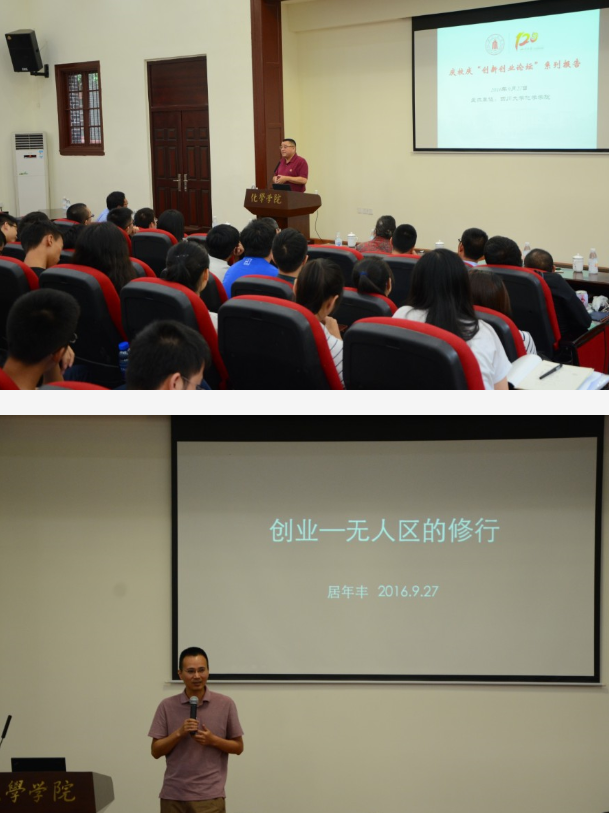 太阳集团2007王智猛书记代表学院致欢迎词并主持了创新创业论坛。王智猛书记首先向莅临此次论坛的各位返校员工和师生表示欢迎与感谢。论坛上,太阳集团200779级员工,青岛三力本诺新材料股份有限公司董事长兼总经理王晓光先生;太阳集团200781级员工,德胜(苏州)洋楼总监聂圣哲先生;太阳集团200789级员工,重庆博腾制药科技股份有限公司(博腾股份)和GENESUN投资控股公司的董事长居年丰先生;太阳集团200789级员工,浙江龙盛股份有限公司副总经理、龙盛研究有限公司总经理何旭斌先生分别做了专题报告。报告内容新颖,讲解深入浅出,激起了在座员工和同学的浓厚兴趣。报告结束后,各位员工与在座师生进行了热烈的交流和讨论。此次论坛积极响应“大众创业 万众创新”的号召,并汇聚员工力量支持“双创”、参与“双创”、共享“双创”,支持学弟、学妹在 创新创业的路上走的更远更久,为自己的母校和学院感到无比的骄傲与自豪。