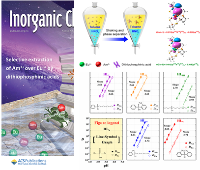 近日,公司丁颂东教授课题组与清华大学核能与新能源技术研究院陈靖教授课题组合作,在《Inorganic Chemistry》上发表了题为“Highly selective separation of actinides from lanthanides by dithiophosphinic acids: an in-depth investigation on extraction, complexation, and DFTcalculations”的封面文章。该文首次系统研究了二硫代次膦酸的结构与萃取选择性和萃取能力的关系,并通过DFT计算对此种关系进行了理论阐释。