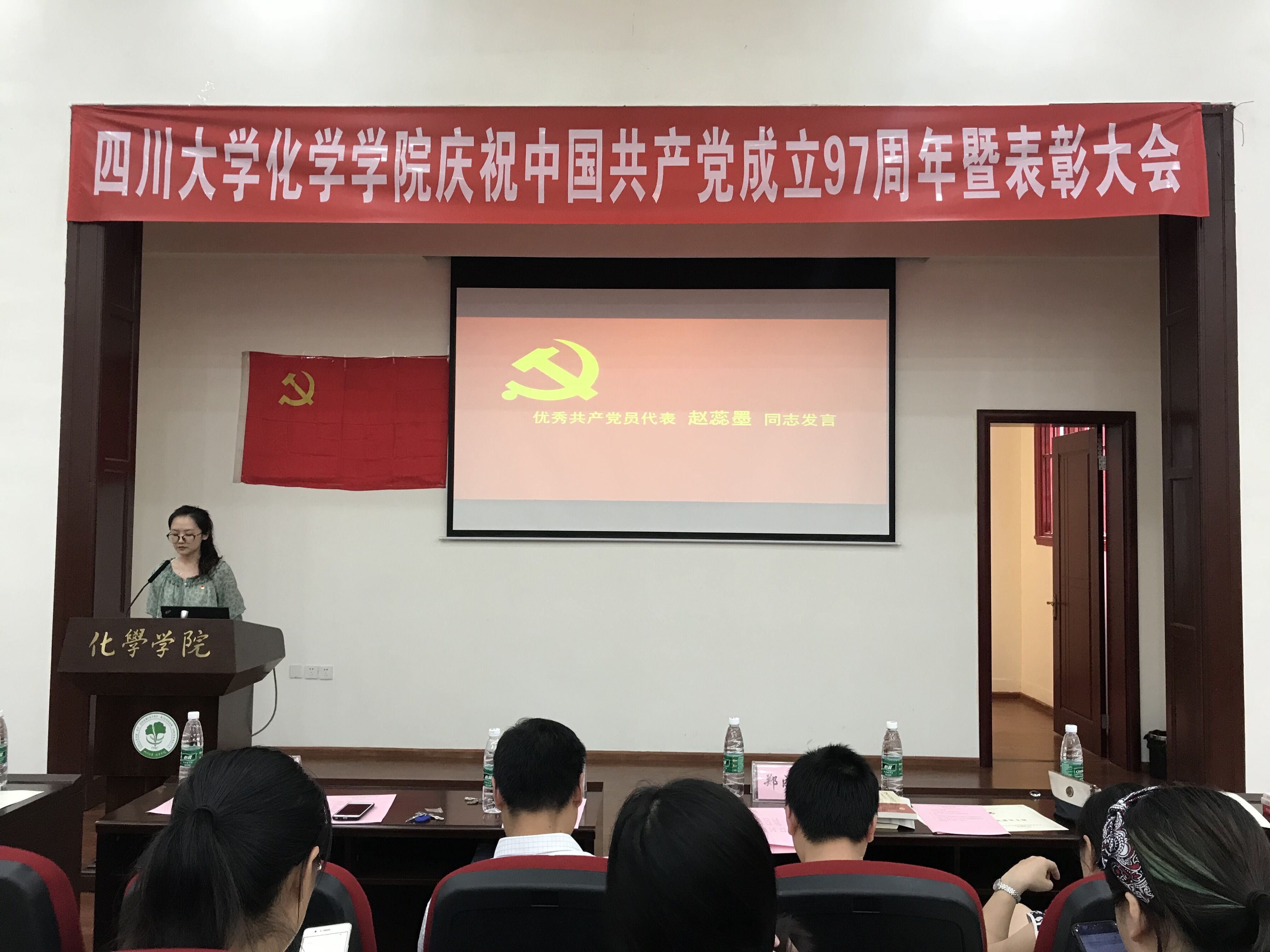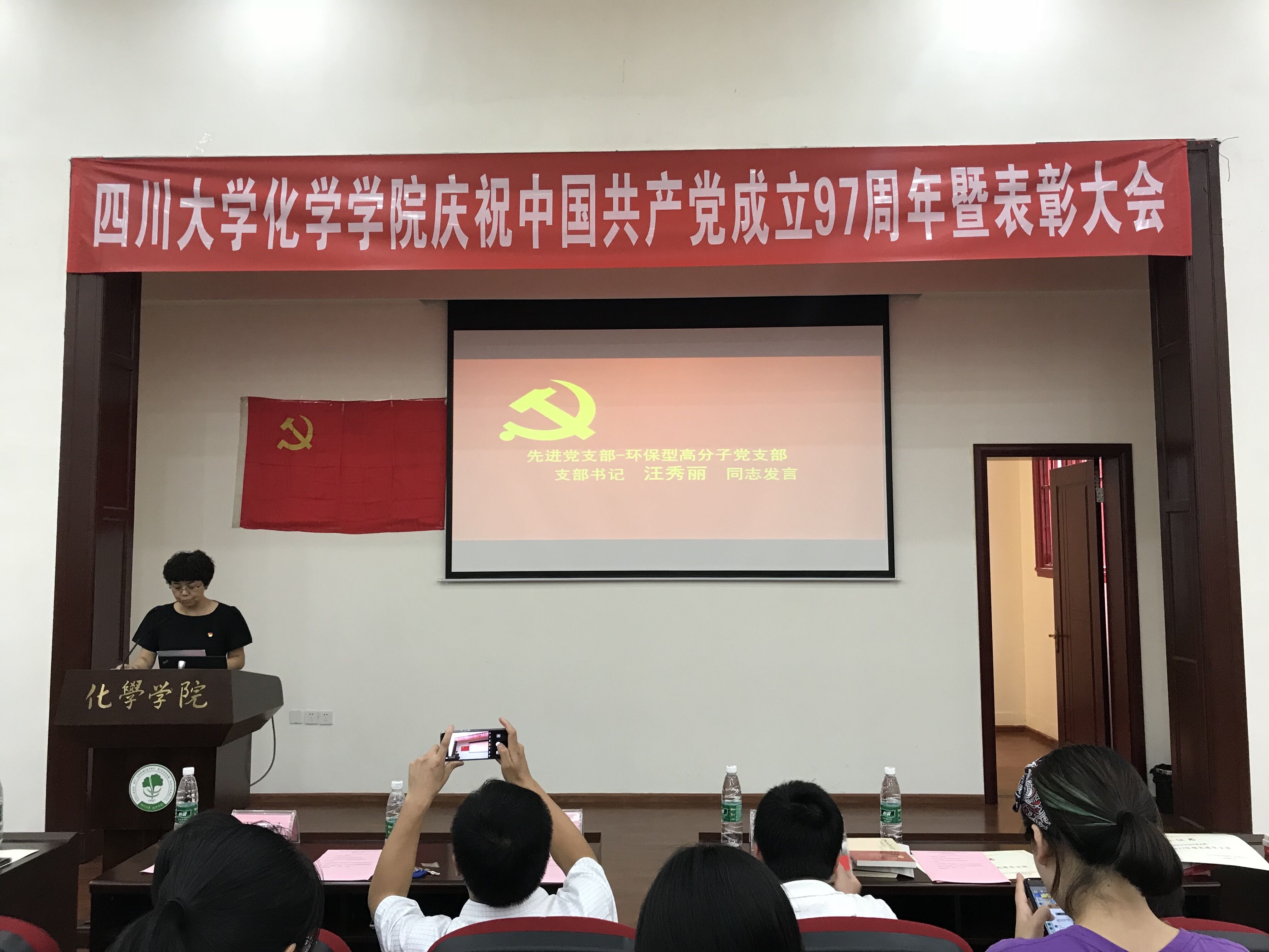 环保型高分子支部书记汪秀丽同志、优秀党员代表2014级本科赵蕊墨同志做交流发言。