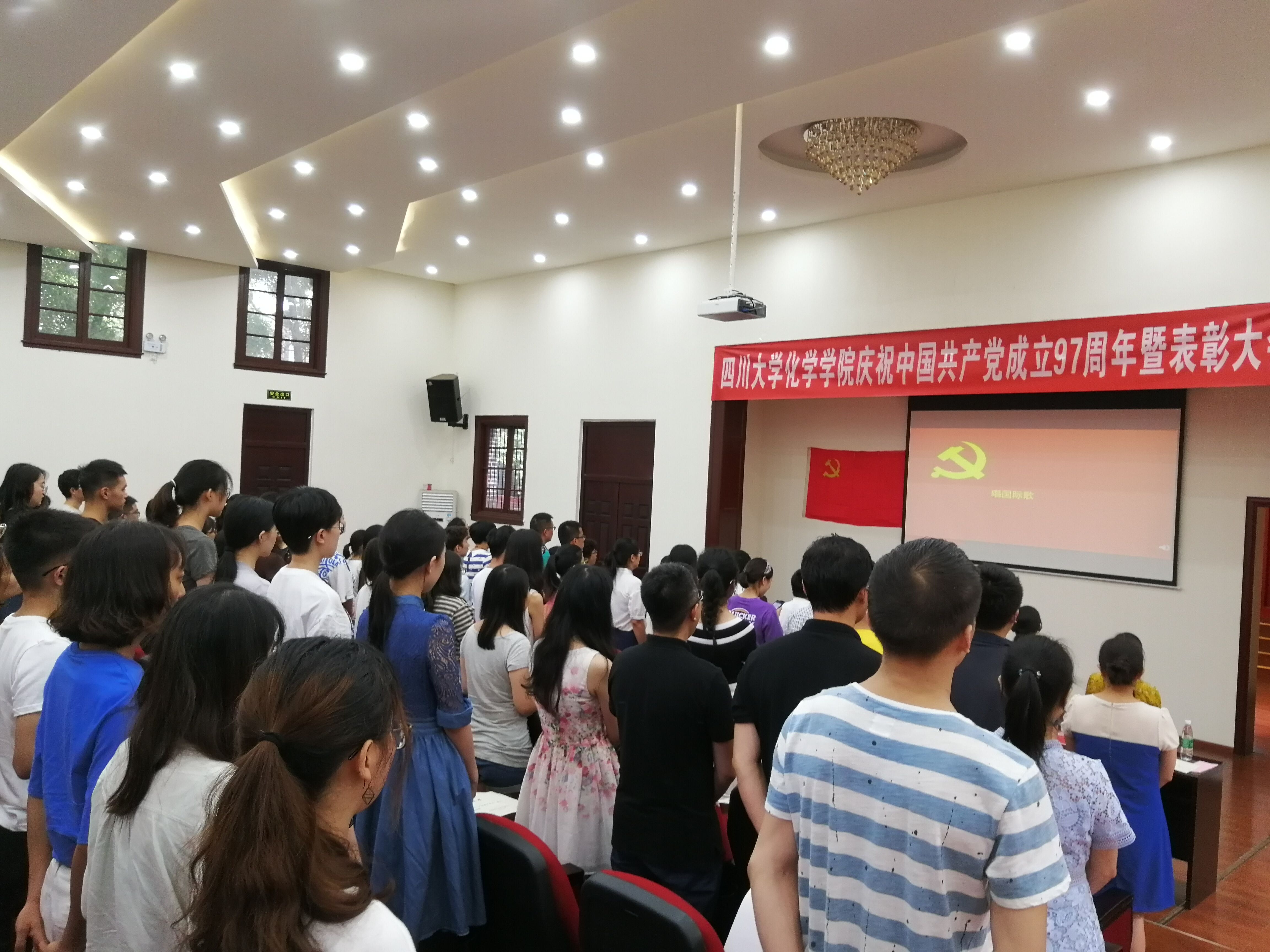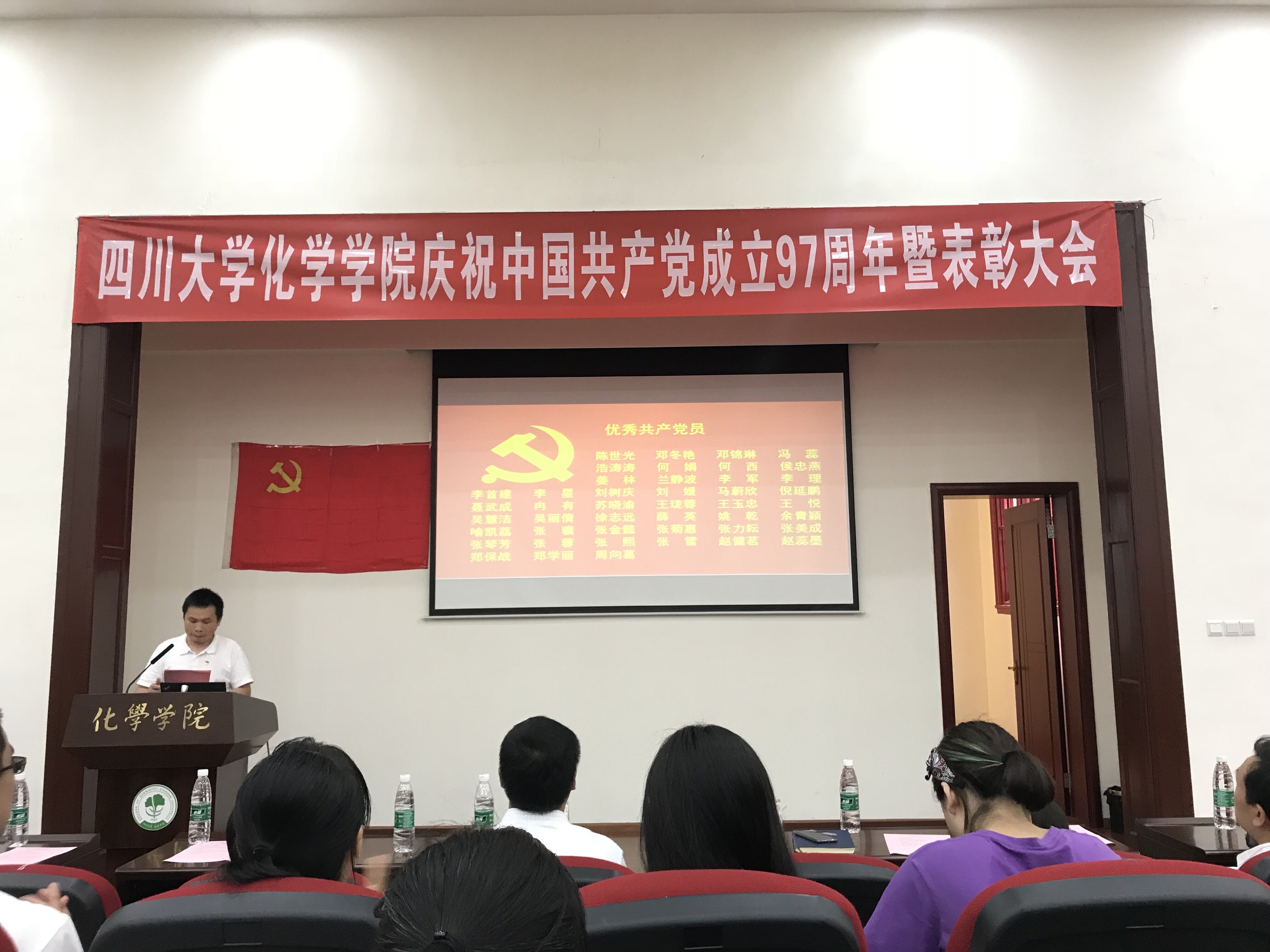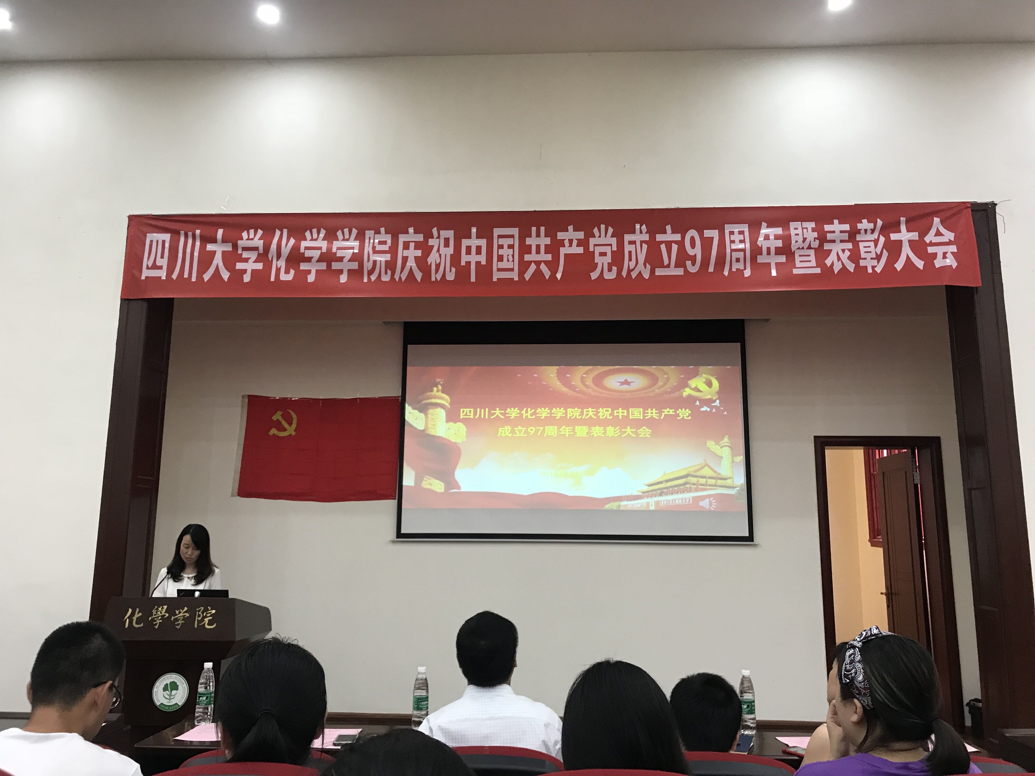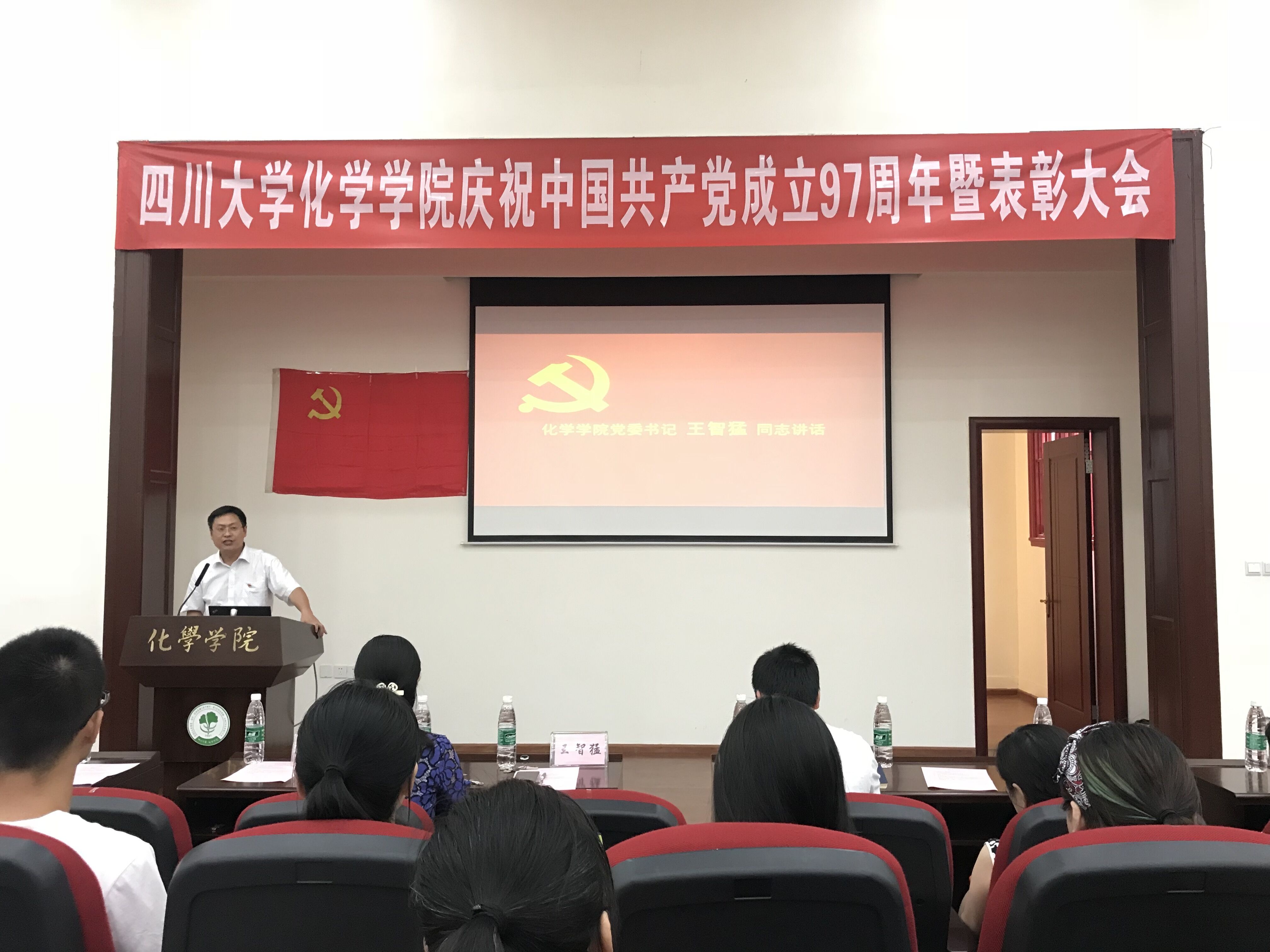 2018年6月29日下午,太阳集团2007庆祝中国共产党成立97周年暨表彰大会在化学馆321报告厅隆重举行。化学公司党委书记王智猛同志、党委副书记谢均同志、副经理郑成斌同志、公司党委委员、党支部书记、优秀共产党员、优秀党务工作者及党员代表出席了大会。大会由谢均同志主持。
