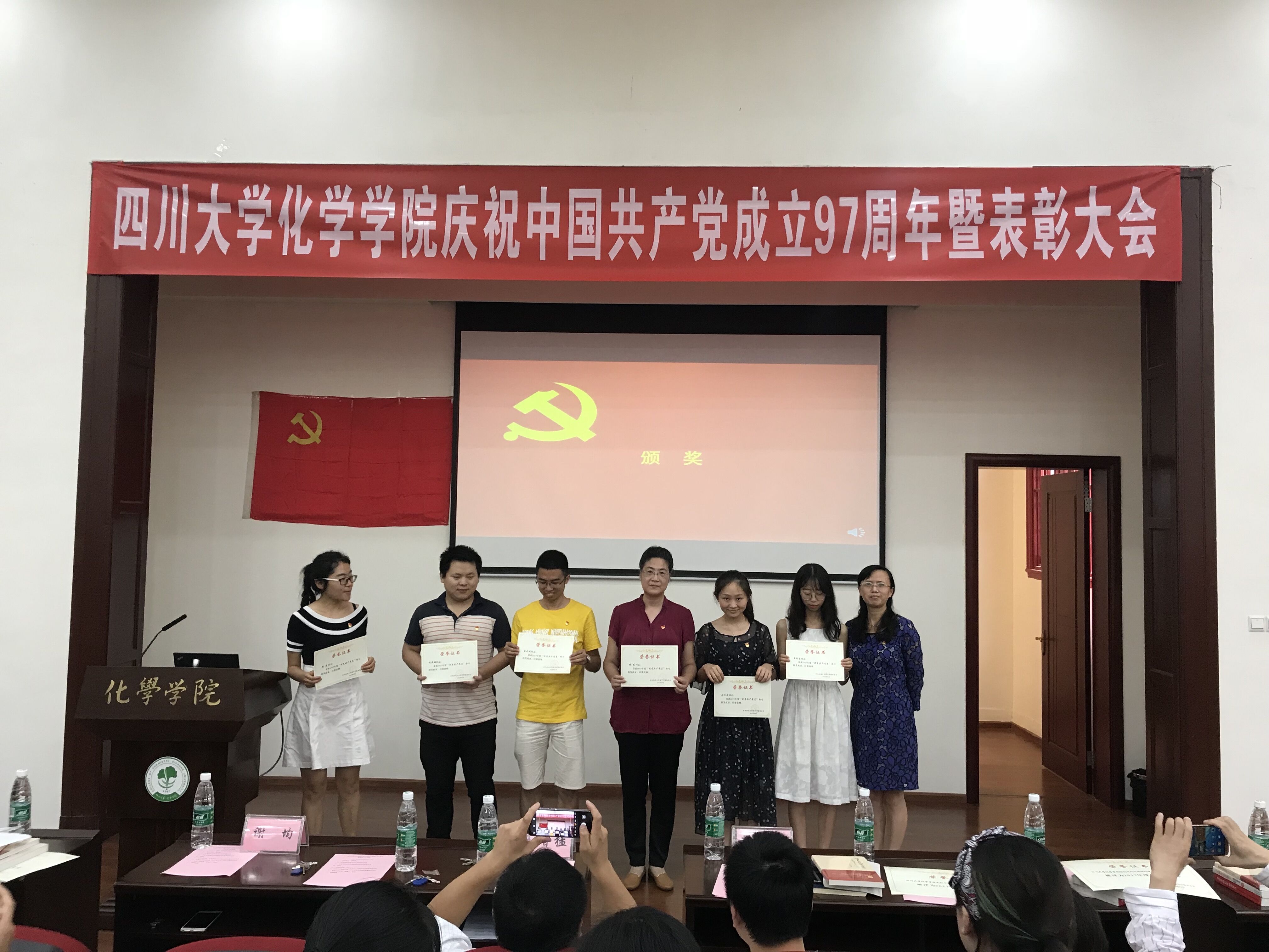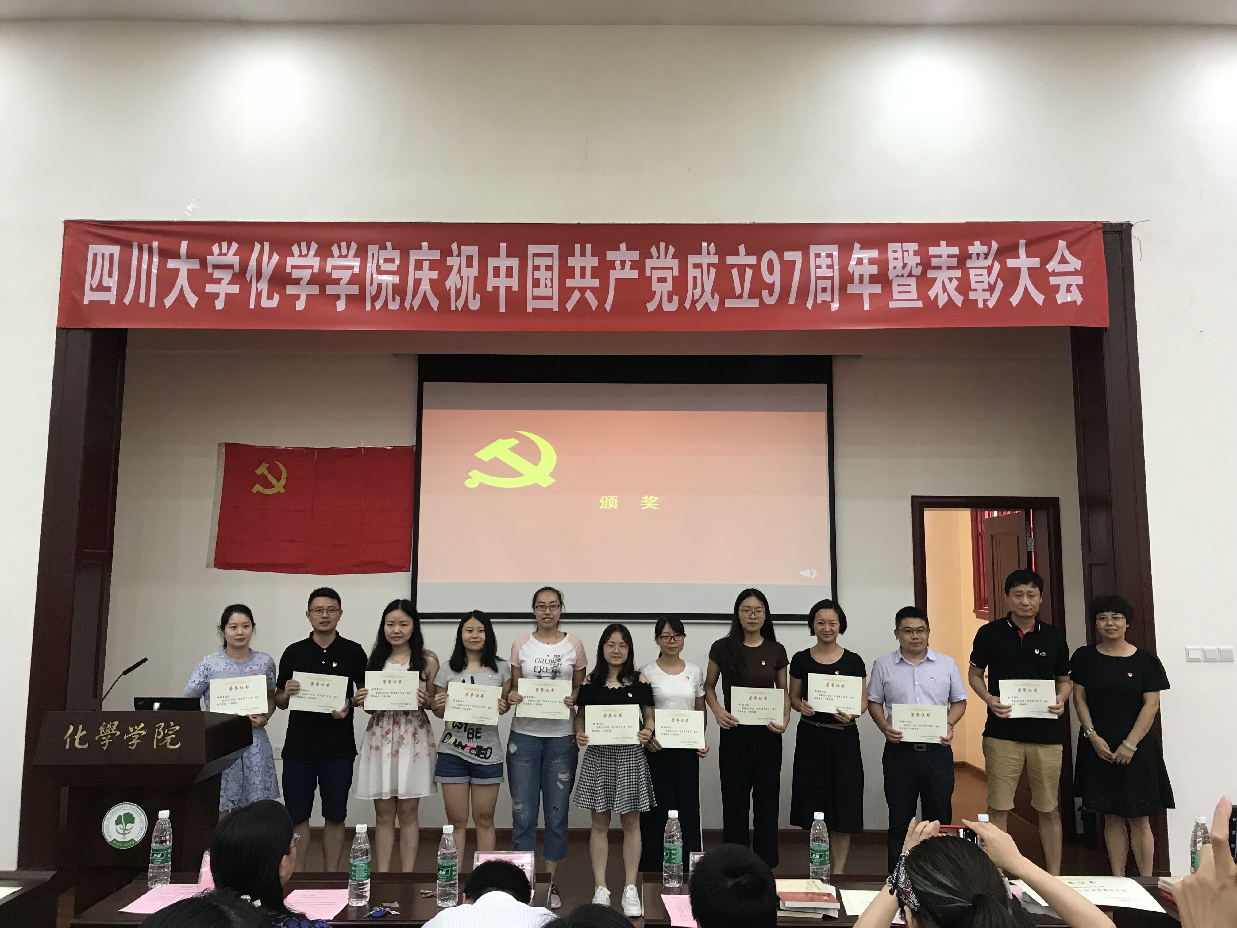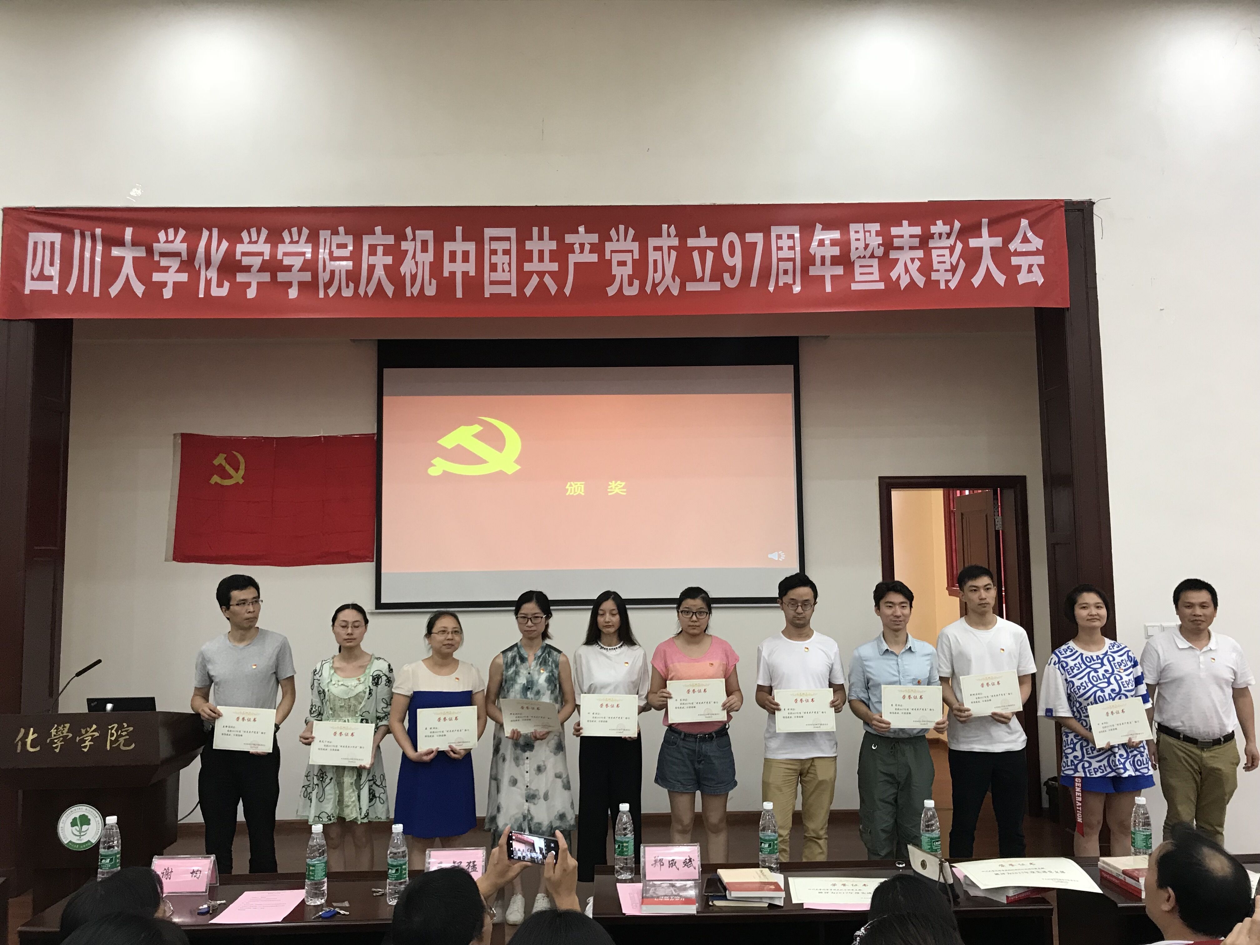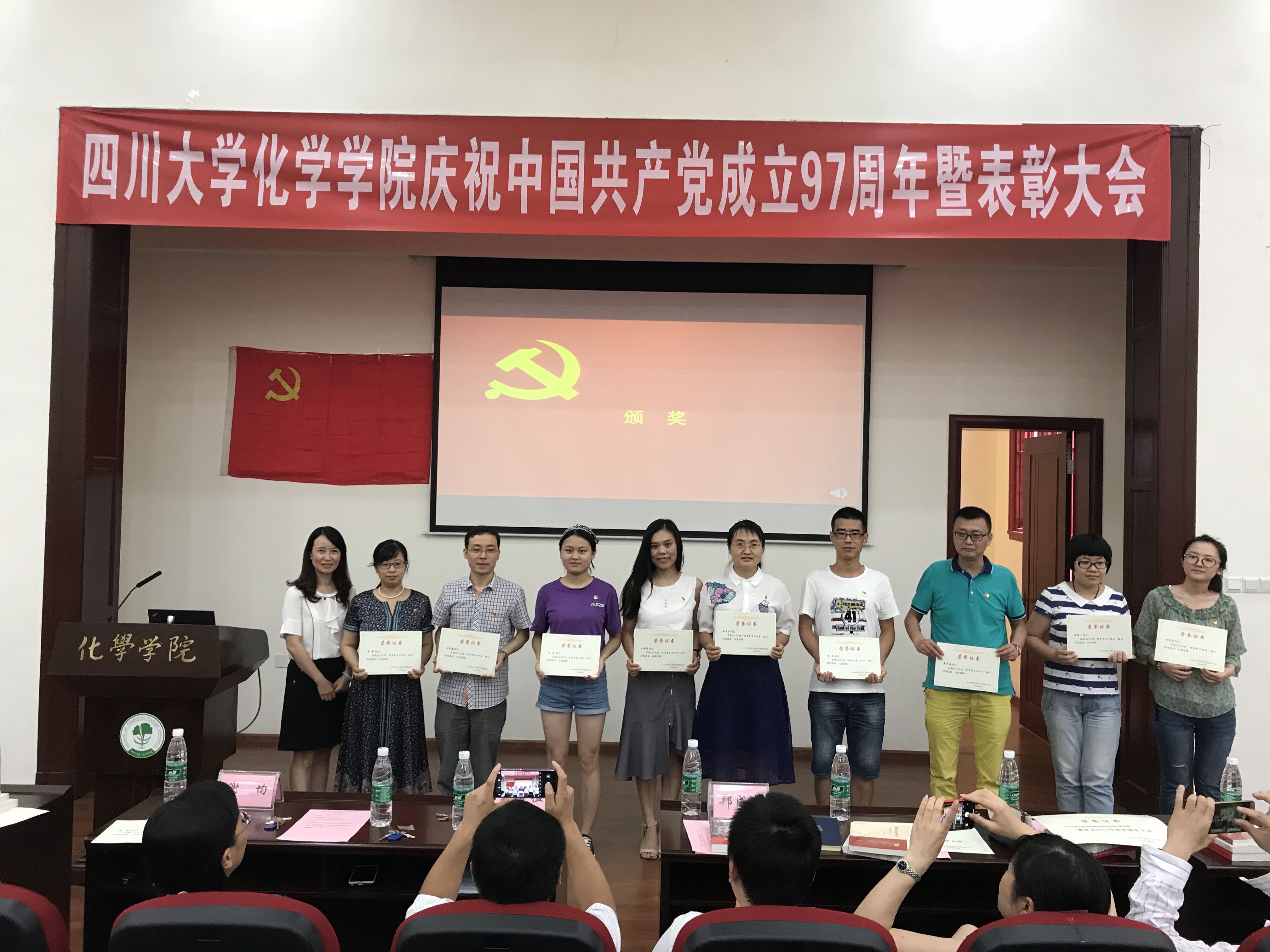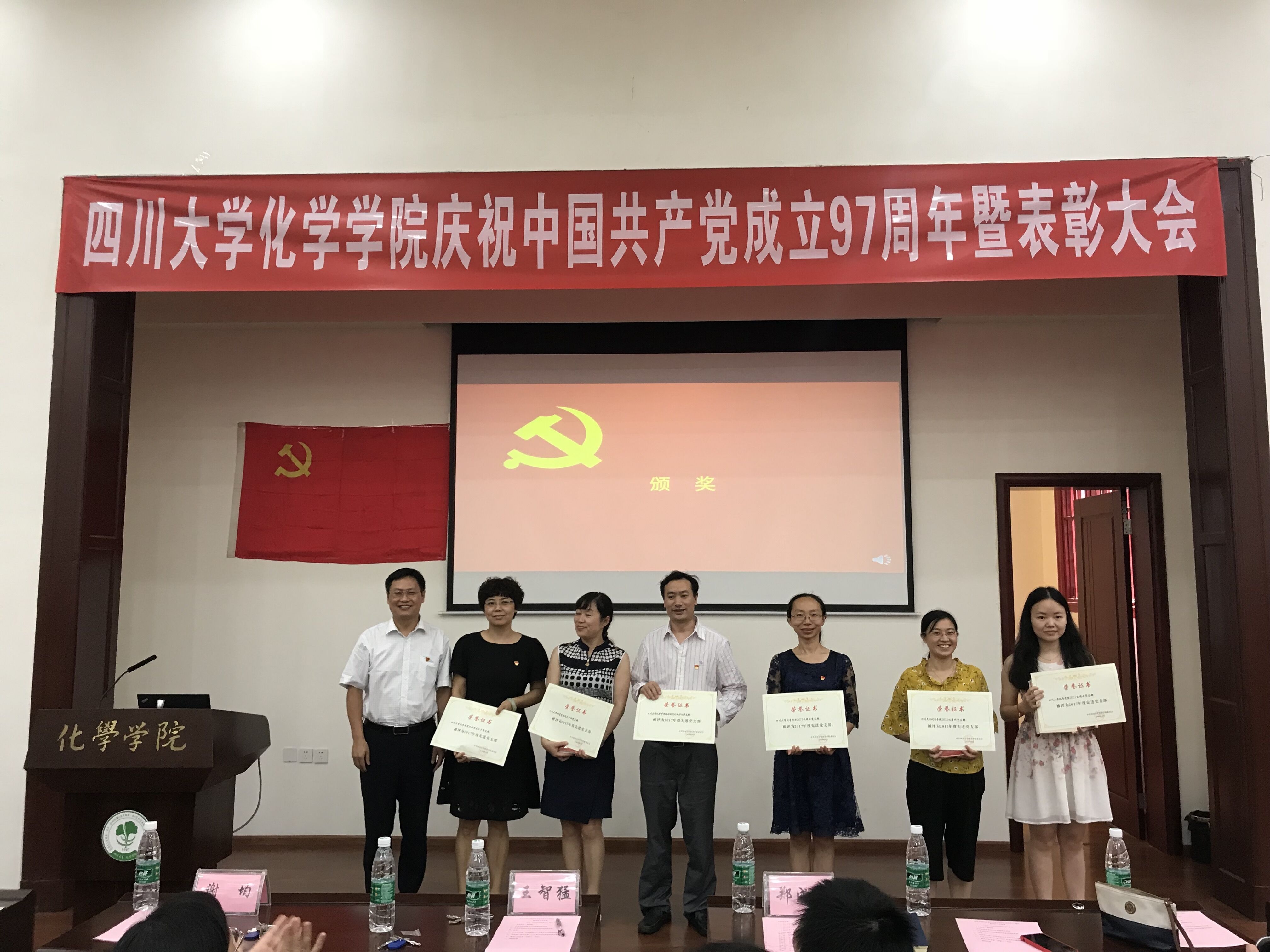 党委委员为获奖的党支部、优秀共产党员、优秀党务工作者颁发了奖状。