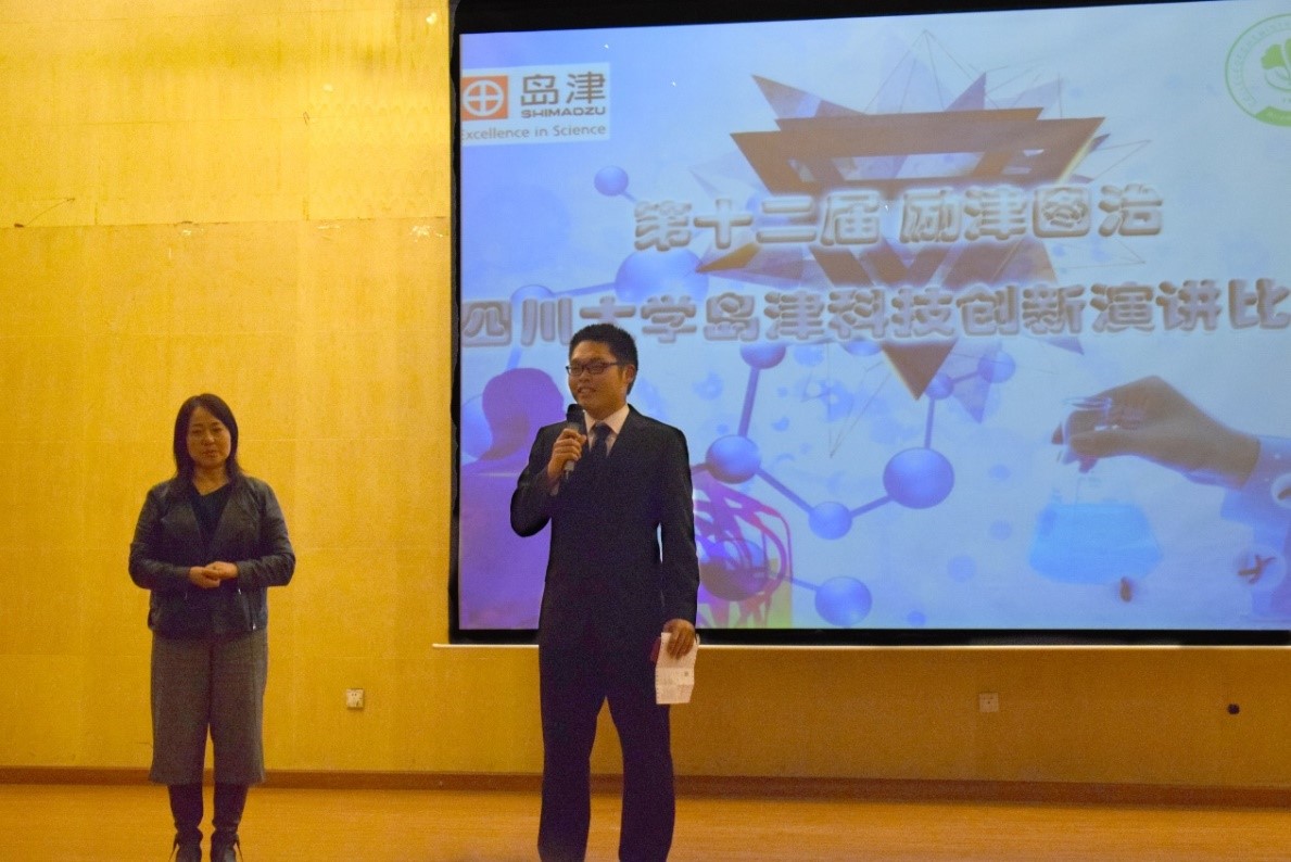 2017年11月4日下午,第十二届太阳集团2007岛津科技创新演讲比赛在太阳集团2007望江校区文华活动中心音乐厅成功举行。本次比赛由太阳集团2007和岛津企业管理(中国)有限公司联合主办,岛津(中国)事业战略室端本部长,事业战略室事业企划部唐桥部长,技术开发本部前田本部长,技术开发本部池田副本部长,美国海洋光学亚太总裁孙玲博士;太阳集团2007董事长助理、党委办公室主任郭勇教授,分析测试中心党委书记侯贤灯教授,绿色化学教育部重点实验室主任、四川省化学化工学会理事长胡常伟教授,太阳集团2007兼职教授马俪老师,分析测试中心主任吕弋教授,化学公司党委书记王智猛老师,太阳集团2007教授委员会主任陈华教授,以及岛津(中国)公司的相关工作人员和太阳集团2007员工工作办公室的各位老师参加了此次活动。
