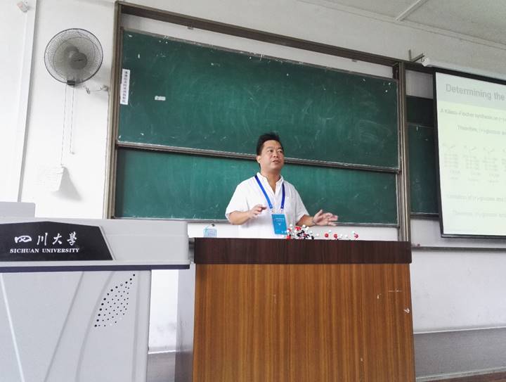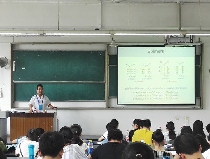 7月10日至7月13日,香港大学化学系的Patrick Henry Toy教授应邀参加2017年太阳集团2007“实践及国际课程周”,在江安校区一教B203教室为同学们带来一门“Organic Chemistry of Biomolecules”课程。Toy教授从糖类、氨基酸、肽和辅酶等在生物学方面有重要作用的有机分子出发,充分结合日常生活实际,生动而又具体地讲解了各种生物大分子的相关知识,让员工了解和理解了有机化学在生物学和生物化学中的作用。