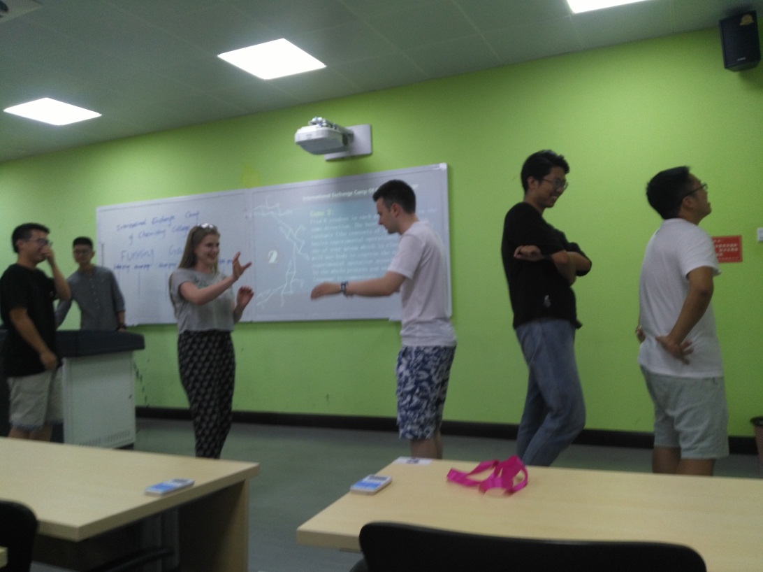 2017年7月7日14:20,来自英国约克大学的7名老员工与交流营23位成员在综合楼B座B305参加了趣味竞技游戏。