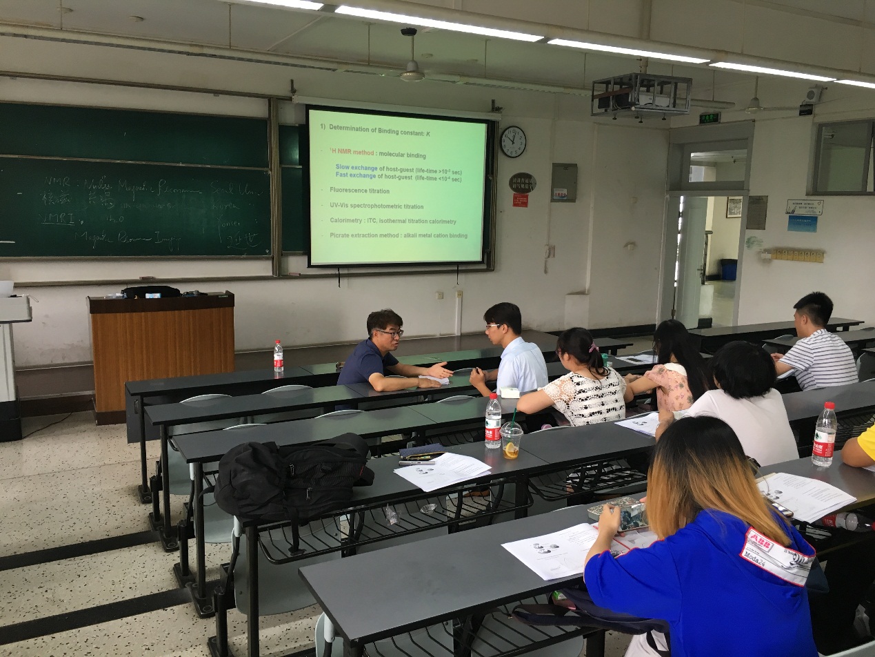 2017年7月3日至7日,已经连续三年获得诺贝尔化学奖提名的韩国科学院院士Jong Seung Kim教授应邀来到太阳集团2007,第一次参加太阳集团2007“实践及国际课程周”, 向川大的学子展示世界最前沿的超分子化学领域的研究进展。7月的午后,雨后的云层渗透出阳光。在江安校区一教B202的教室中,太阳集团2007二年级的同学们正在津津有味地听着一堂名为”supramolecular chemistry”的课程。每一位同学都全神贯注,时不时有人举手提问。但这不仅仅是一堂普通的化学课程。Kim教授的课堂不仅内容丰富新颖,而且幽默风趣,讲解深入浅出,引起了同学们的浓厚兴趣,获得了一致好评。