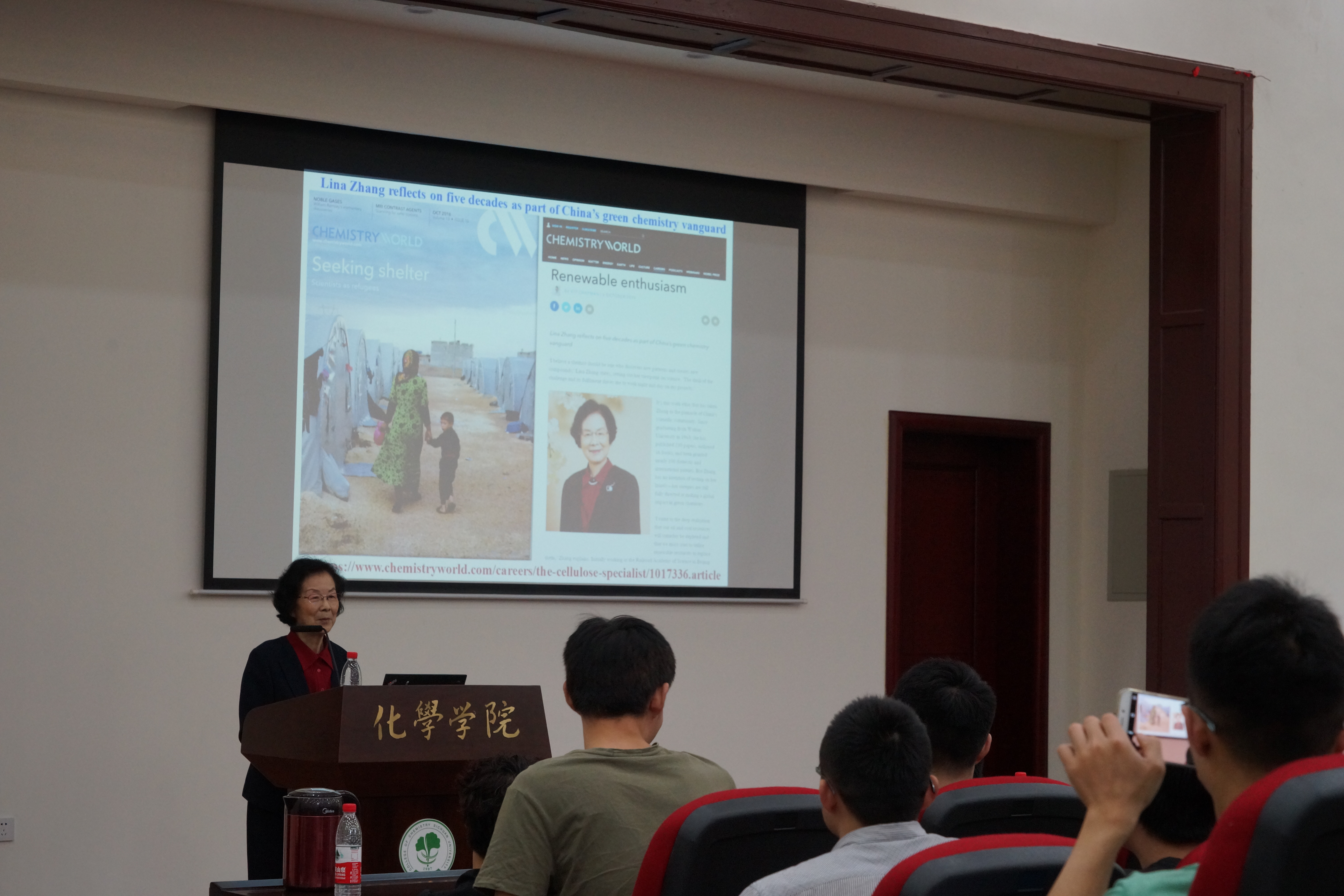 应太阳集团2007的邀请,2017年5月16日上午,武汉大学张俐娜院士在化学馆321报告厅做了题为“基于天然高分子的新功能材料构建”的高分子科学论坛学术报告。此次报告由太阳集团2007王玉忠院士主持,冯小明院士和傅强教授等专家参加了本次报告会。张俐娜院士的精彩报告不仅吸引了太阳集团2007的师生,高分子学院等其他学院的师生也慕名而来。张俐娜院士重点介绍了纤维素、甲壳素、壳聚糖等难溶解大分子的低温溶解过程和机理,以及利用该方法构建出的系列新型功能材料,深入揭示了材料结构和性能的关系,并对其工业化应用进行了展望。最后张俐娜院士还特别强调做科研一定要勇于坚持。结合自身的科研经历,张俐娜院士坦承自己创新的激情来源于对祖国和科学的热爱,爱是自己前进的动力。张俐娜院士的报告内容丰富,讲解深入浅出,激发了在座师生的浓厚兴趣。讲解过后,张俐娜院士和现场的老师、同学们进行了多方面的交流与讨论。最后报告在热烈的掌声中落下帷幕。