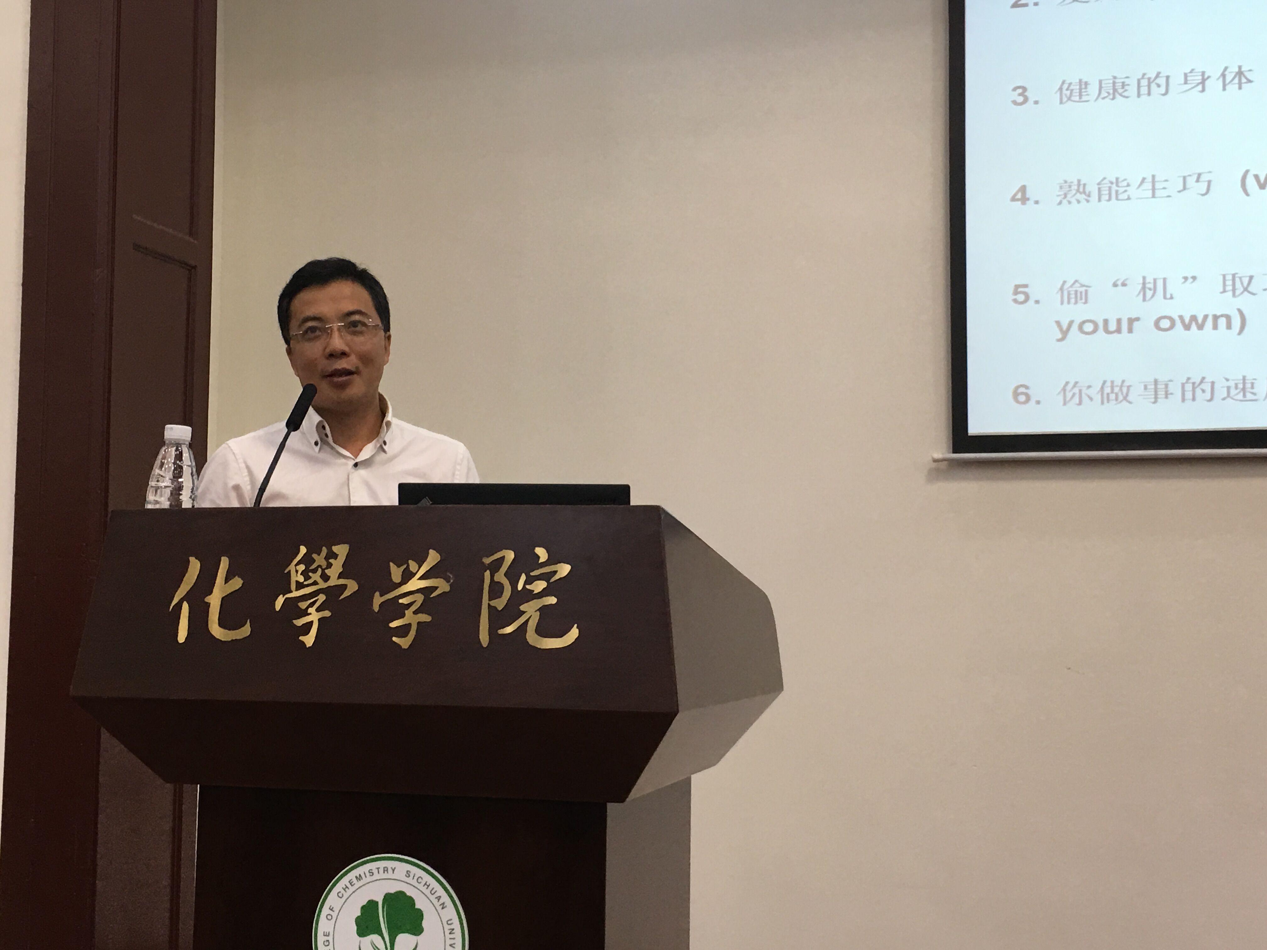 应太阳集团2007的邀请,2017年6月5日上午,新加坡南洋理工大学张其春副教授在化学馆321 报告厅做了题为“The New Strategies to Approach New Exotic Materials”的学术报告。此次报告会由太阳集团2007余孝其经理主持,彭强教授、徐定国教授、林之恩教授等数位老师和相关专业研究生参加。报告会前,余孝其经理介绍了张其春老师的简历和学术成就。在报告中,张其春老师首先向在座的研究生给予了从事科研的一些建议,如诚实、爱好、熟能生巧、投“机”取巧等,然后介绍了一些纳米材料和晶态材料的合成新方法和新策略,特别是表面活性剂热法应用于晶态硫族化物和金属有机框架材料的合成。张其春老师的报告内容丰富,精彩纷呈,激起了在座老师和同学的浓厚兴趣。