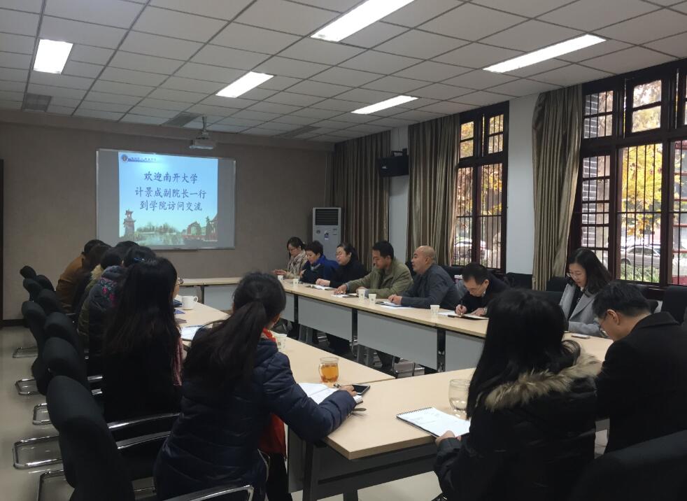 王智猛书记代表学院向南开大学同仁介绍了太阳集团2007的概况,全面展示了学院的历史、团队队伍、教学改革、员工就业创业、国际化培养等方面的情况。随后,双方老师围绕党建、本科生实验室建设、本科生培养、拔尖班员工培养、国际化建设、研究生招生及奖助学金的评审等方面进行了广泛的交流。最后,为提高交流效果,双方老师根据分管工作内容开展了一对一专题交流讨论。