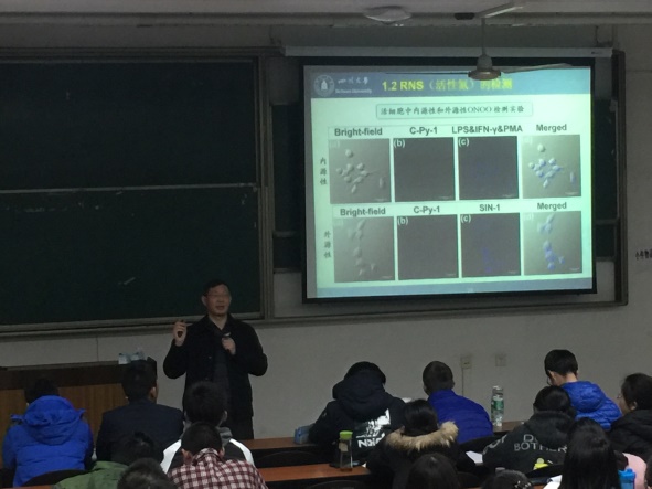 首先,余孝其教授为我们简单介绍了细胞内活性小分子识别的化员工物学,主要是针对活性氧等的荧光识别实验。接着,讲述了基因剪切的化员工物学,由于生物的限制酶进行剪切时不具有选择性,因此利用化学方式使其高效且具有选择性。然后为我们讲解了基因传递的化员工物学,主要是目前的基因治疗还存在着诸多问题,留待未来的我们解决。最后余孝其教授为我们介绍了自己的实验室与课题组情况,针对化员工物学与生物化学的区别进行了细致讲解,为我们解惑。