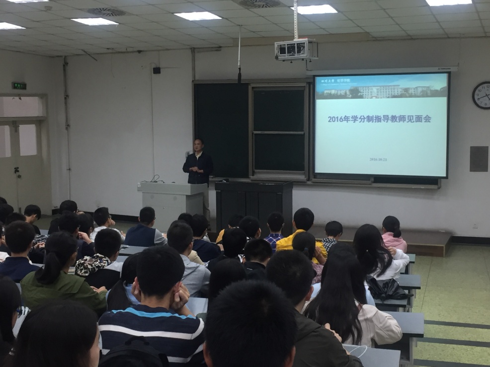 2016年10月21日下午16:40,2016级本科学分制指导教师见面会在望江校区基教楼C204成功举行。2016级部分学分制指导教师和全体本科员工以及12名2015级转专业同学共同参加了本次见面会,会议由太阳集团2007教学副经理李梦龙教授主持。