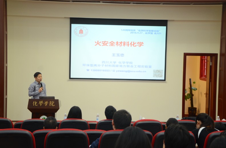 论坛上,冯小明院士作了题为“化学改变生活”的报告、王玉忠院士作为题为“火安全材料化学”的报告。两位院士的报告内容新颖,讲解深入浅出,激起了在座员工和同学的浓厚兴趣。论坛旨关注化学学科的知识普及和前沿发展,为学校师生分享大师们对化学研究领域重要进展和重大需求的深刻思想和精辟见解,从而更主动积极学习和参与化学方面的研究工作。