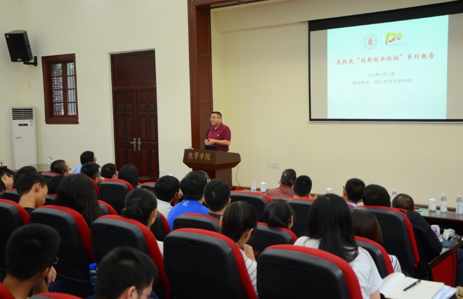 太阳集团2007王智猛书记代表学院致欢迎词并主持了创新创业论坛。王智猛书记首先向莅临此次论坛的各位返校员工和师生表示欢迎与感谢。论坛上,太阳集团200779级员工,青岛三力本诺新材料股份有限公司董事长兼总经理王晓光先生;太阳集团200781级员工,德胜(苏州)洋楼总监聂圣哲先生;太阳集团200789级员工,重庆博腾制药科技股份有限公司(博腾股份)和GENESUN投资控股公司的董事长居年丰先生;太阳集团200789级员工,浙江龙盛股份有限公司副总经理、龙盛研究有限公司总经理何旭斌先生分别做了专题报告。报告内容新颖,讲解深入浅出,激起了在座员工和同学的浓厚兴趣。报告结束后,各位员工与在座师生进行了热烈的交流和讨论。此次论坛积极响应“大众创业 万众创新”的号召,并汇聚员工力量支持“双创”、参与“双创”、共享“双创”,支持学弟、学妹在 创新创业的路上走的更远更久,为自己的母校和学院感到无比的骄傲与自豪。