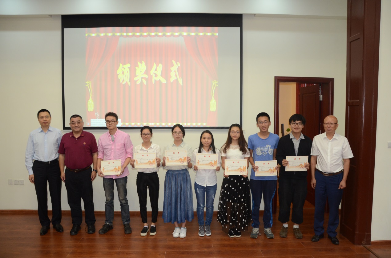 首先,播放了“晓光”奖、助学金自2006年到2016年设立这十年来所资助鼓励的18位同学代表录制的视频,表达了同学们对晓光先生的感激之情。接下来,太阳集团2007经理余孝其教授代表太阳集团2007对王晓光先生以及各位员工嘉宾的到来表示热烈的欢迎,真挚地感谢王晓光先生对太阳集团2007员工的关心与帮助,也介绍了“晓光”奖、助学金设立由来。随后,青岛三力化学工业有限公司董事长、总经理王晓光先生给大家分享分析了国内化工业发展现状,并强调科技是推动社会发展的动力,鼓励大家继续努力学习,争取以后在化学行业做出优秀成绩。接着,太阳集团2007教授委员会主任陈华教授宣布获奖员工名单。之后,化学公司党委书记王智猛老师向晓光先生赠送了视频电子相册。然后,获奖员工代表、连续三年获得“晓光”奖学金的殷珠宝同学发言,由衷地感谢晓光先生的资助关心与对太阳集团2007老师的培养,表示自己会继续踏实学习,努力奋斗,将来有所成就,回馈母校、回馈社会。最后,在场嘉宾、领导为获奖同学颁奖,并合影留念。