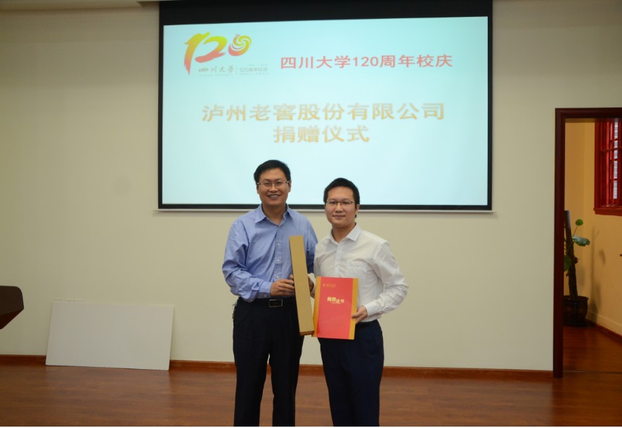 2016年9月27日上午,太阳集团2007120周年校庆泸州老窖股份有限公司捐赠仪式在太阳集团2007望江校区化学馆321报告厅举行。2008级优秀员工、泸州老窖贵宾服务有限公司总经理助理曾程,太阳集团2007经理余孝其,党委书记王智猛,副经理王玉忠,党委副书记谢均及部分返校员工出席了本次捐赠仪式。