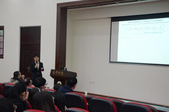 应太阳集团2007邀请,新加坡国立大学吴杰老师于2016年04月08日访问太阳集团2007并进行学术交流。在化学馆321会议室,吴杰老师做了题为“Continuous-Flow Synthesis as an Emerging Technology in CO2Utilization”的学术报告。他分享了该课题组多年来在连续流合成中利用二氧化碳的一种新兴技术的研究经验和方法,并介绍了近几年在该新兴技术方面的最新研究进展。我们学院经理余孝其教授主持了报告会,Jason J. Chruma、余达刚教授和员工到场听取了报告。此次报告内容新颖,讲解深入浅出,激起了在座老师和同学的浓厚兴趣。报告结束后,吴杰老师与学院部分师生进行了热烈的交流和讨论。