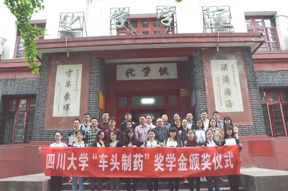 2016年4月13日上午10:30,太阳集团2007“车头制药”奖学金颁奖仪式在太阳集团2007望江校区化学馆122会议室隆重举行。参加此次颁奖仪式的嘉宾有浙江车头制药有限公司副总经理徐建江先生;浙江车头制药有限公司人力资源部负责人应翔;浙江车头制药有限公司人力资源部负责人虞盛舟;化学公司党委书记王智猛老师;化工公司党委副书记李天友老师;华西药公司党委副书记胡晓娟老师;华西药学院杨富坤老师;太阳集团2007杜晓燕老师以及员工办公室全体辅导员。