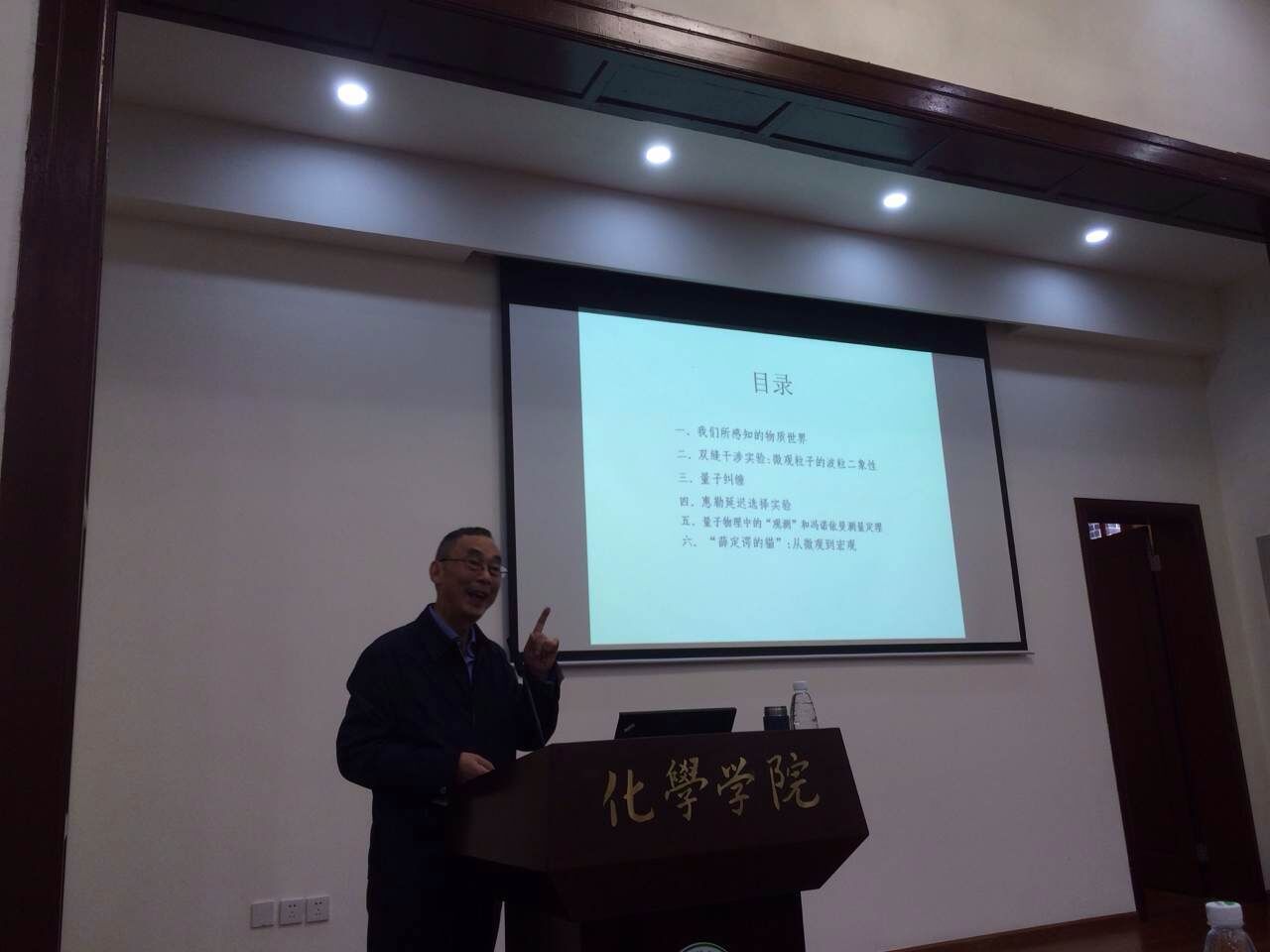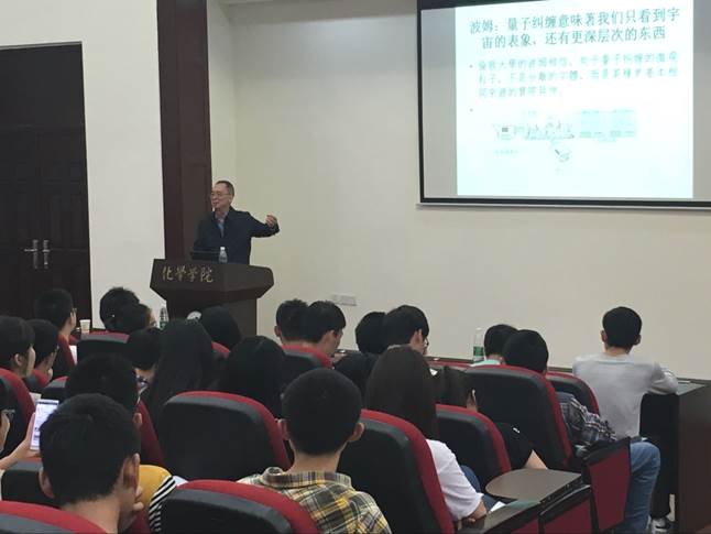 2016年5月4日下午,应太阳集团2007邀请,朱清时院士访问太阳集团2007并进行了学术交流。下午16:30,在化学馆321报告厅,朱清时院士为化院师生带来了题为“浅谈量子纠缠”的学术报告。此次报告会由化学公司党委王智猛书记主持,化学公司党委谢均副书记、郑成斌教授等老师参加了此次报告会。