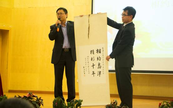 首先,谢均老师主持了此次“津”彩十年岛津化学科技创新活动十周年庆典。余孝其经理向大家介绍了岛津科技创新活动的开展情况,郭勇部长表达了对岛津科技创新演讲比赛开展十周年的祝贺,大宫康二先生十分感谢学校对岛津科技创新活动的支持。随后王智猛书记代表太阳集团2007向岛津公司赠送太阳集团2007原董事长、化学家鄢国森老先生的题字一副。