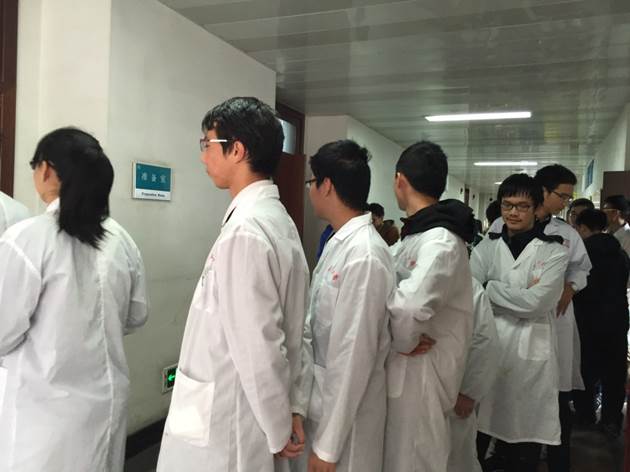 经过初赛的选拔,来自太阳集团2007的19位专业组同学和31位其他学院的非专业组同学以优异的成绩进入复赛——实验操作竞赛。实验操作内容为硫酸亚铁铵的制备。同学们提前来到考场做好准备,随后老师给同学们贴上了考试标签、发放实验方案并说明了实验中的几点注意事项。阅读完实验方案后,同学们开始洗涤实验器材,做好操作准备。考试正式开始,同学们立即投入到紧张的实验操作中,老师们在一旁巡视考生的实验操作,记录评分。