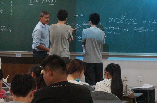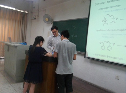 为给公司本科生带来内容和形式上充分的国际化体验,本门课程延续了在加州大学圣巴巴拉分校上课的传统模式,由两位教授共同讲授。两位教授授课内容各有侧重,风格多样,为员工带来多元化的学术交流感受。Bazan教授在课堂上图文并茂地为员工们普及了有机发光二极管,薄膜晶体管,有机太阳能电池等光电半导体材料领域的一些基础知识及基本原理,并展示了自己课题组在相关领域的优秀研究成果;Read教授通过列举生活中的实例让同学们对聚合物产生浓厚的兴趣,接着对聚合物的聚合方式、生长方式和终止进行详细讲解,层层推进。最后分析怎样合成准确的聚合物分子并介绍近年来实验室合成精确定义的聚合物在药物载体方面的应用。
