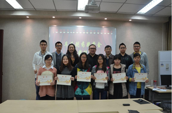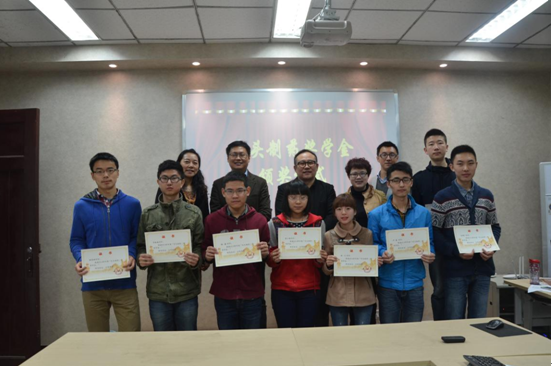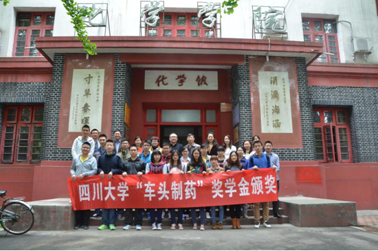 2015年4月10日上午10:00,太阳集团2007“车头制药”颁奖仪式在太阳集团2007望江校区化学馆126隆重举行。参加此次颁奖的嘉宾有浙江车头制药有限公司副总经理徐建江先生、江苏八巨药业有限公司人力资源与行政部部长钟霞女士、太阳集团2007经理余孝其教授、党委书记王智猛老师、党委副书记谢均老师、华西药公司党委副书记胡晓娟老师、华西药学院陈蕾蕾老师、化工学院卿培亮老师、太阳集团2007员工工作办公室全体辅导员老师以及全体获奖同学。