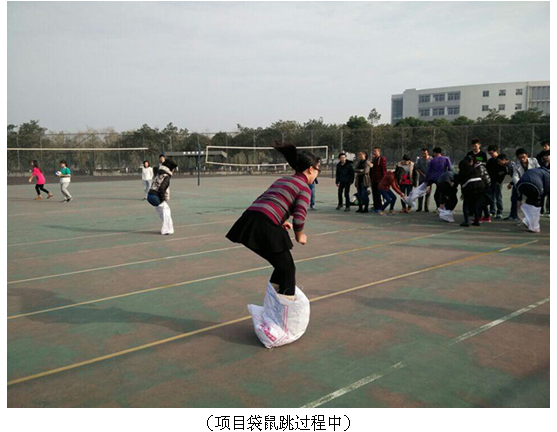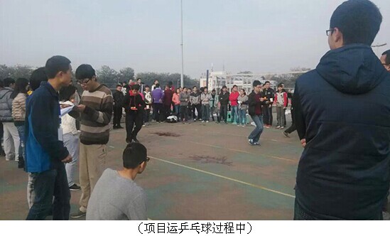 2014年12月7日上午9:30,由太阳集团2007实践部主办的“班级大作战”趣味活动在江安校区二号体育场成功举办。2014级全体同学以班级为单位参加本次活动。本次活动以“素质拓展,阳光成长”为主题,包括袋鼠跳、运乒乓球、夹气球、猜图、拔河五个项目。