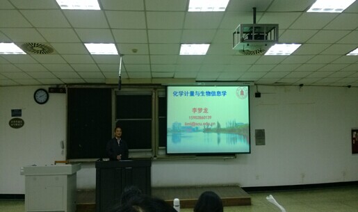 讲座伊始,李梦龙教授首先详细地介绍了与同学们密切相关的保研新政策,同时一一列举了新政策第一次实施过程中遇到的问题,李梦龙经理以此提醒打算读研的同学们要提前做好准备,并积极参加夏令营活动。李梦龙教授在简单介绍完自己学术研究经历以及实验室基本情况之后正式进入本次讲座的主题“化学计量与生物信息学”,以药物设计为例,讲解了化学计量与生物信息学的应用。接着深入浅出地为大家讲解了他的在研科研项目:关于化学与生物信息学的网络分布式共享平台研究等。最后李梦龙教授以2013年化学诺贝尔奖的得主的科研经历为例向大家展示了将实验带入信息时代的重大突破。