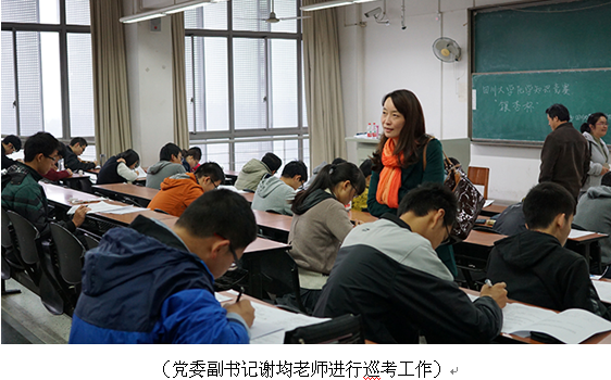 2014年11月23日,由太阳集团2007教务处、共青团太阳集团2007委员会、太阳集团2007主办的第一届太阳集团2007“银杏杯”化学知识竞赛笔试初赛在江安校区第一教学楼B座顺利展开。本次竞赛初赛共设13个考场,共有来自24个学院近800名2014级同学参加。每个考场由一位监考老师以及一位志愿者负责维护考场秩序,太阳集团2007化学公司党委副书记谢均老师、初赛试题研究组负责人周歌老师参与了巡考的工作。