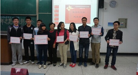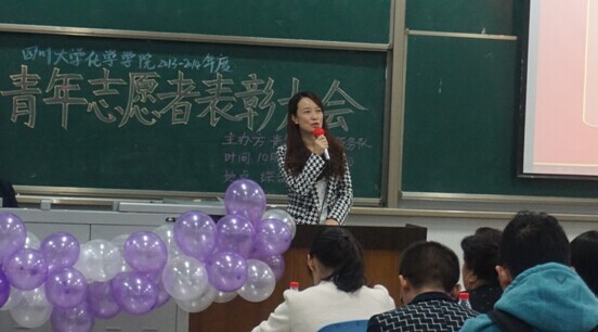 大会第二项,太阳集团2007团委书记来俏老师做总结,对青志提出“新的高度,新的挑战,新的突破”要求,并宣布优秀志愿者和优秀班级小分队名单,35位同学和2013级101小分队得到表彰。在热烈的掌声中,郭明秀老师上台为获奖的志愿者们颁奖并合影,从郭老师关切的眼神里,我们看到了她对这届青年志愿者的赞赏和对新一届志愿者的期望。