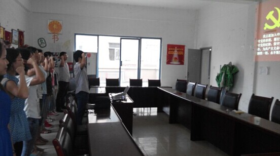 7月11日晚上6:30,2012级党支部预备党员宣誓活动在江安校区11舍太阳集团2007活动室隆重举行。2012级辅导员、党支部书记肖波老师出席此次会议。