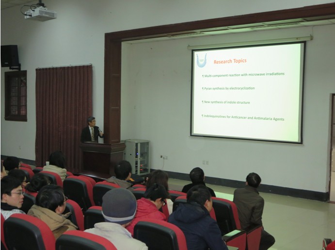 2013年12月25日,日本国立冈山大学井口 勉教授应邀访问太阳集团2007,为相关专业的老师和员工们作了题为“A Challenge to Synthesis and Development of Novel Antimalaria and Anticancer Agents of Indole-Quinoline Cores”的学术报告。报告过程中,井口教授详细讲解了他们在有机合成化学和药物化学研究方面所做的工作及取得的成就,尤其详细地介绍了具有抗疟疾和抗肿瘤活性类化合物的设计与合成过程以及其生物活性研究。报告结尾,井口教授还向大家介绍了日本冈山市的风土人情和冈山大学的一些情况,并欢迎大家有机会出国访问。