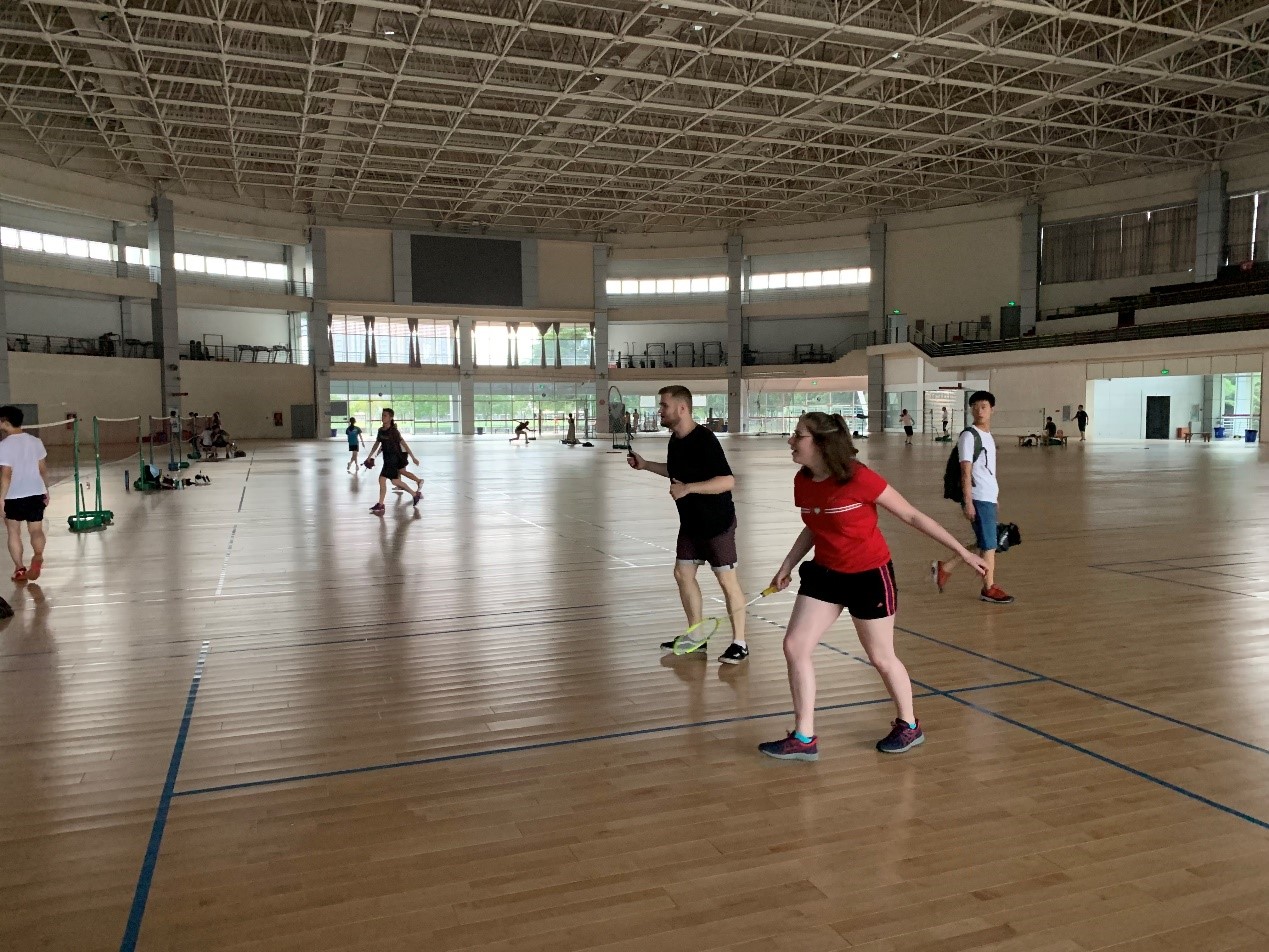 2019年7月2号下午,太阳集团2007国际交流营成员在江安校区体育馆举行了趣味体育活动和羽毛球比赛。