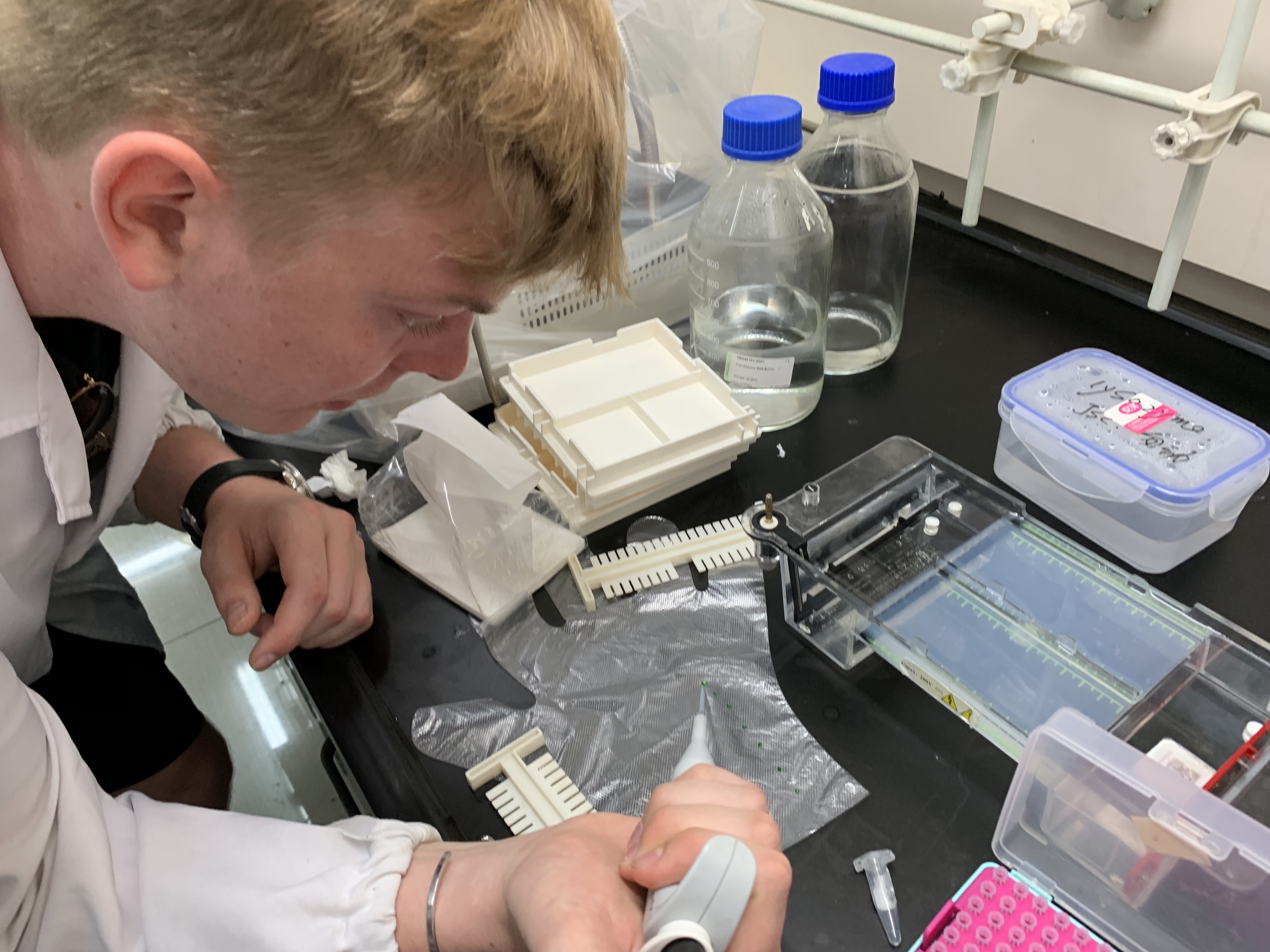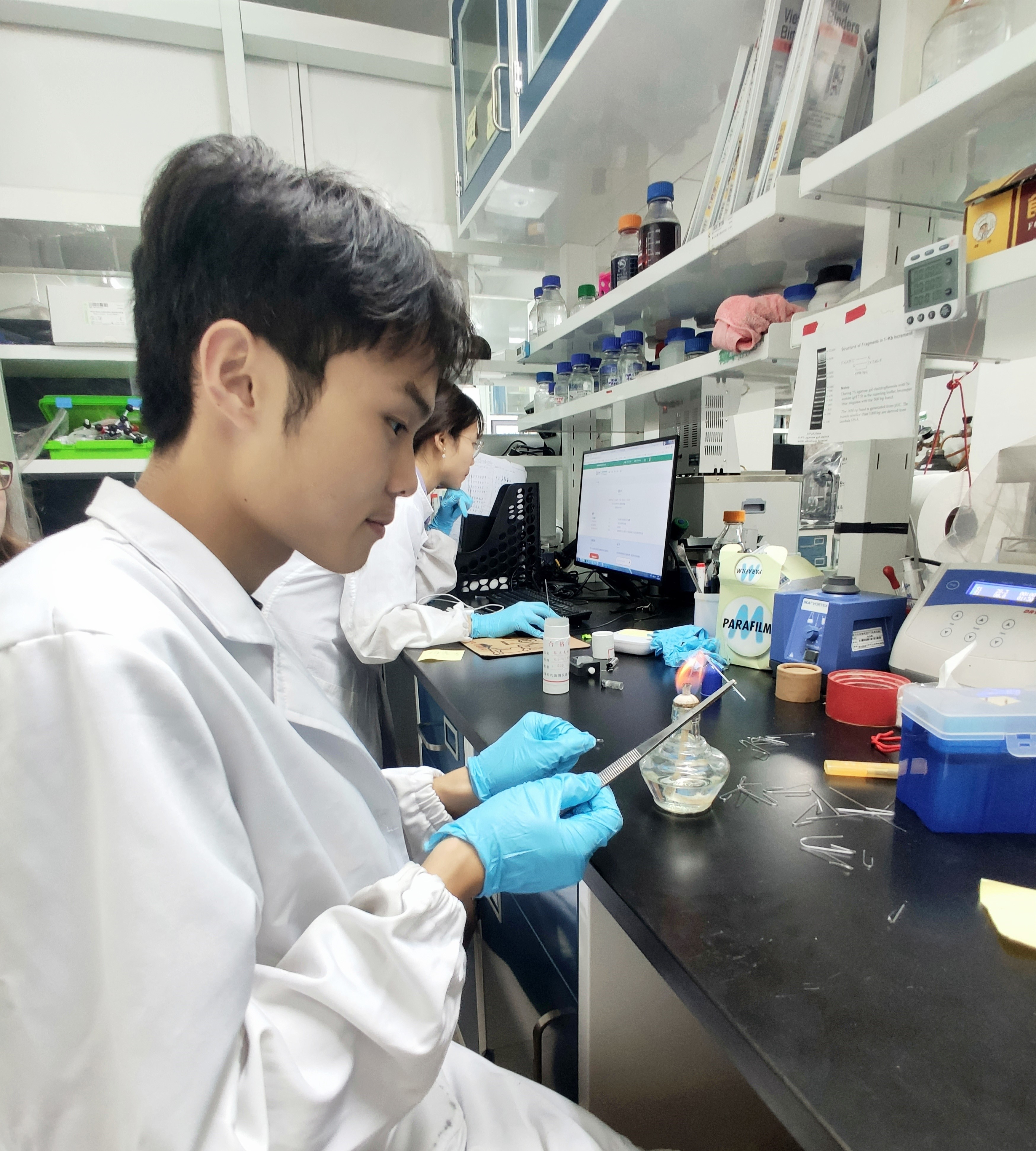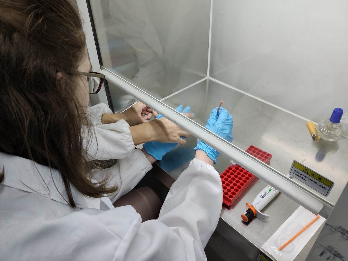 中外员工参与了课题研究中的部分关键实验的操作,如DNA以及蛋白质电泳、功能化大肠杆菌细胞培养、非天然氨基酸的柱色谱分离等。在这些实验中,中外员工学习到了化员工物学和分子生物学中的一些基础实验技术,了解到了科研过程中的基础思维和习惯,感受到了化学前端科研的魅力。