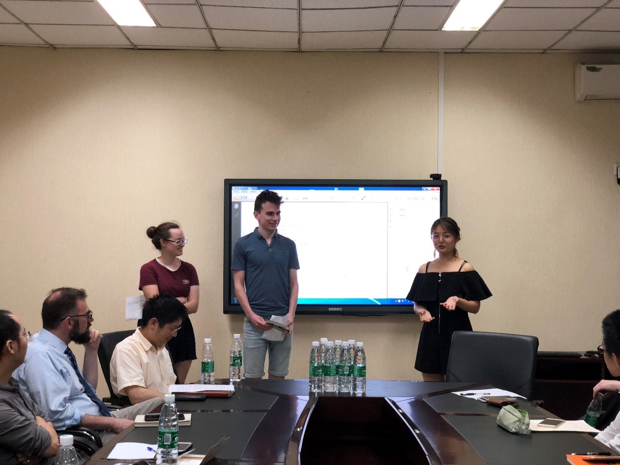 7月12日早上10点,2019年UIP国际交流营员工科研成果汇报暨闭营仪式在化学馆103会议室举办,12名交流营成员分组汇报为期一周的实验室工作。太阳集团2007全职外教Jason Chruma教授主持了此次汇报会,三位实验指导教师余志鹏教授、杨千帆副教授、宾正杨副教授及学院外事秘书马晓爽老师参加了汇报会。