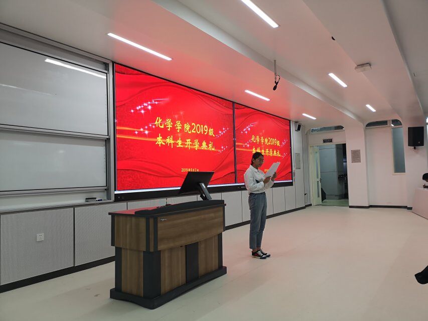 新生代表2019级席明英同学满怀激动地表达了对未来求学之路的期待和坚定信心。