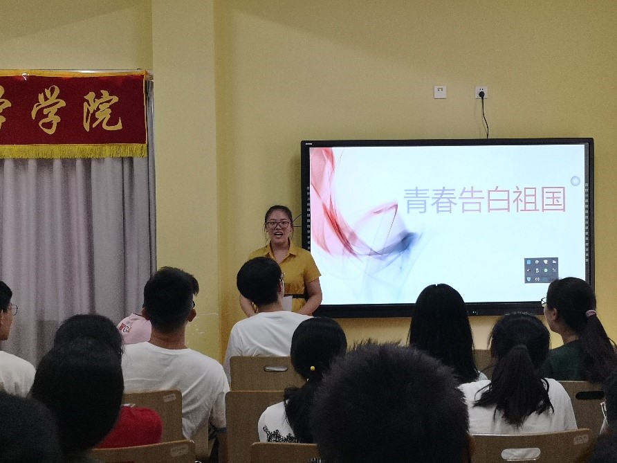 为庆祝中华人民共和国成立七十周年,深入贯彻落实习近平新时代中国特色社会主义思想,大力弘扬爱国主义精神, 9月8日,学院以“青春告白祖国”为主题,为2019级新生上了第一堂形势与政策课。