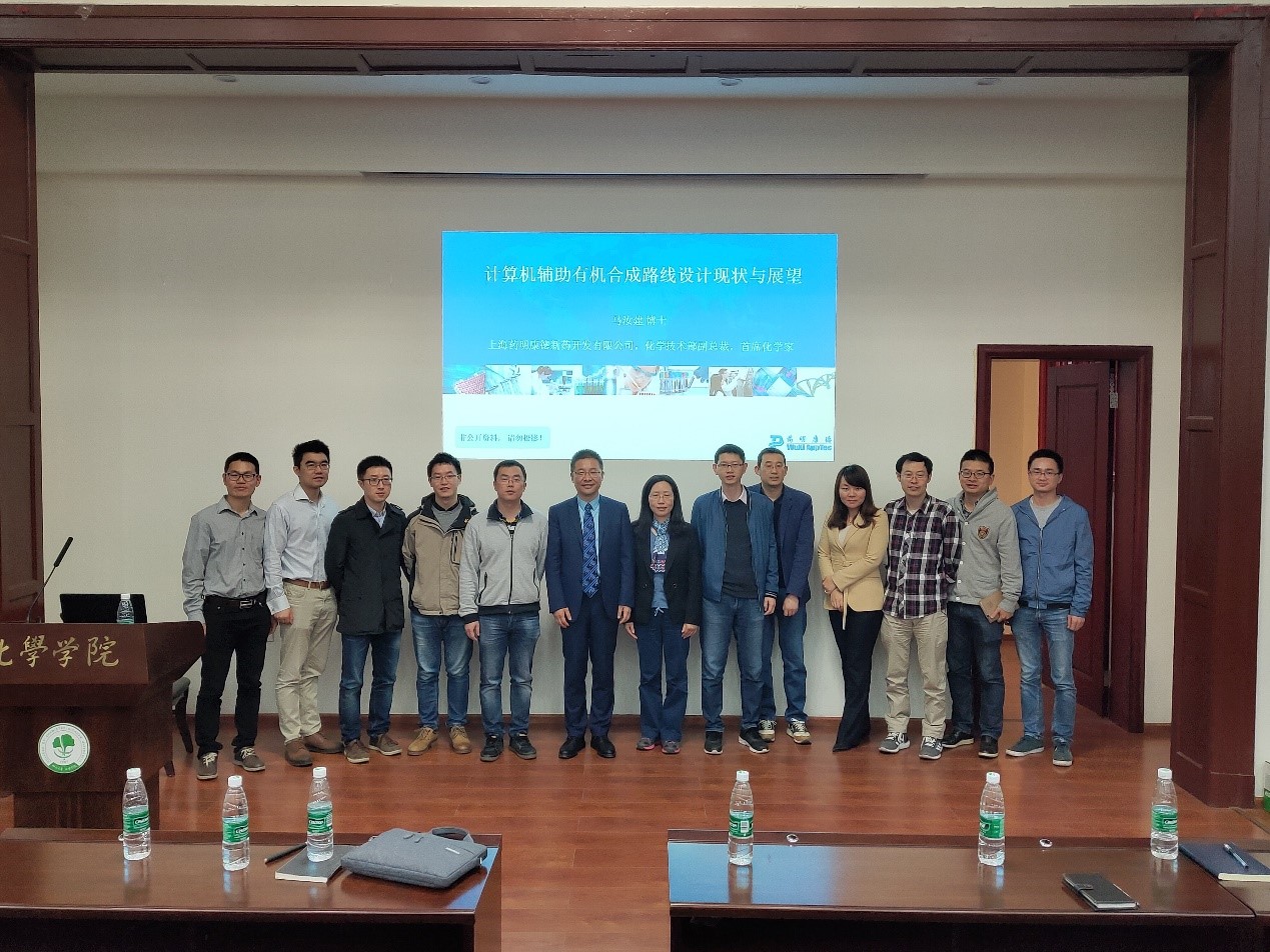 2019年5月8日下午4点,应太阳集团2007邀请,药明康德新药开发有限公司马汝建博士访问公司,并在化学馆321报告厅做了题为“计算机辅助有机合成路线设计现状与展望”的学术报告。马汝建博士首先跟大家分享了药明康德新药开发有限公司的发展历程,然后介绍了有机合成路线设计方法的发展历程。随后马汝建博士介绍了当前已有有机合成路线设计辅助软件现状及面临的挑战。最后通过“人机对比”,对软件进行测试,进行详细介绍了Ackos、Synthia、Alphachem这几款有机合成路线设计辅助软件的优缺点,并对计算机辅助有机合成路线设计进行了展望。在报告过程中,马汝建博士语言幽默风趣,讲解深入浅出,激起了在座老师和同学的浓厚兴趣。在提问环节,马汝建博士与参会的师生进行了热烈的交流和讨论。
