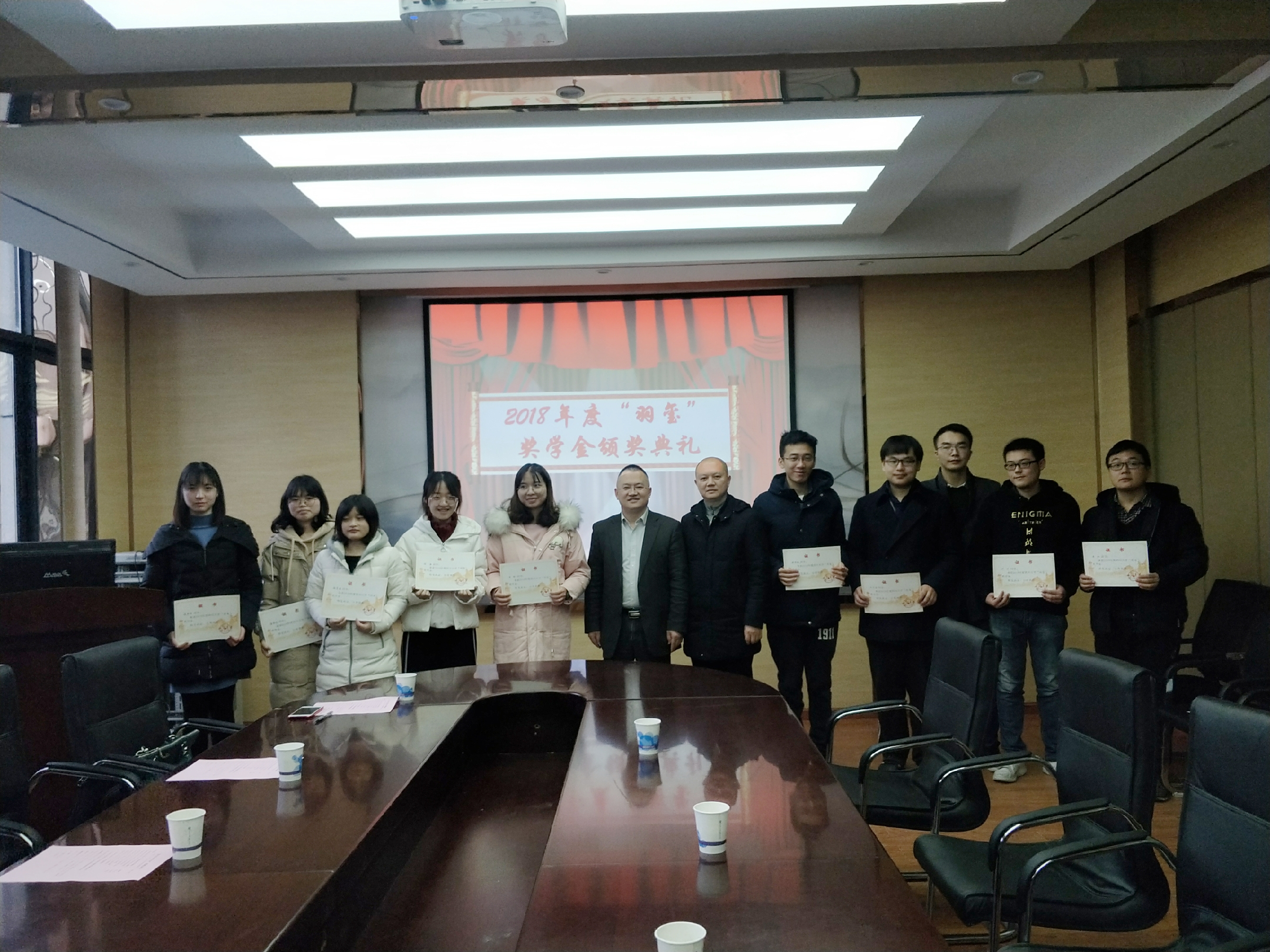 2019年1月7日下午,太阳集团2007“羽玺”奖助学金颁奖典礼在望江校区第一理科楼南313会议室成功举行。出席本次颁奖典礼的嘉宾有四川羽玺新材料股份有限公司董事长张建军先生、总经理张宏先生、副总经理许显成先生,太阳集团2007副经理李坤教授、党委副书记谢均老师、陈善勇老师、员工办公室老师以及全体获奖同学。