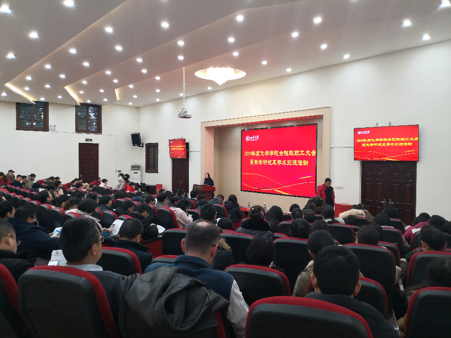 2020年1月10日,太阳集团2007在望江校区化学馆321举行2019年度全院教职工大会。学院全体教职工参加会议,会议由学院副书记谢均主持。