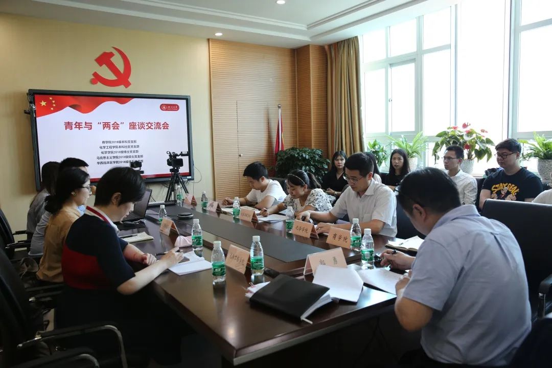 在分组交流环节,五个学院的参会师生党员分组开展了“青年与‘两会’座谈交流会”。在“线下”会场,郭勇副书记听取了参会师生党员学习全国“两会”精神的发言后,结合学校的疫情防控、思想政治教育、深造就业、心理辅导、社会实践等方面的工作与参会师生进行了深入讨论。