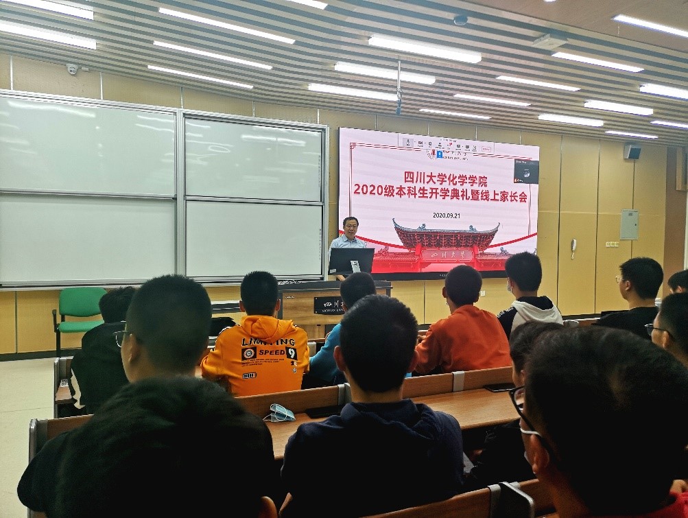 2020年9月21日晚,2020级本科新生开学典礼暨线上家长会在江安校区综合楼C座307教室进行。化学公司党政领导、辅导员和全体2020级本科新生参加。同时邀请了新生家长线上参加本次新生开学典礼暨线上家长会。