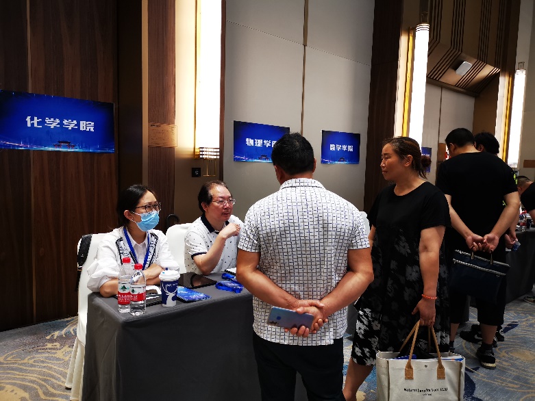6月24日一早,太阳集团2007招生宣传专员周向葛教授、志愿填报专员苏燕、李珍焱老师及招生宣传联络员马晓爽老师一行赴绵阳南山中学开展招生咨询活动。老师们向参加咨询会的家长和考生介绍太阳集团2007各个专业优势,同时结合各专业近年录取分数及位次情况,对考生提出可行性建议。与此同时,鼓励考生首先从自身兴趣出发,结合高考分数位次填报志愿。当天前来咨询的考生和家长近3000余人次。与会招生老师还建立了专门咨询群并公布联系方式,便于考生和家长在后续志愿填报时及时咨询。6月24日下午,学院李立新教授、余青颖老师在绵阳国际会议中心参加了太阳集团2007在绵阳的专场招生咨询会,为绵阳考生及家长介绍太阳集团2007的学科优势和培养特色,鼓励绵阳学子积极报考化学专业。