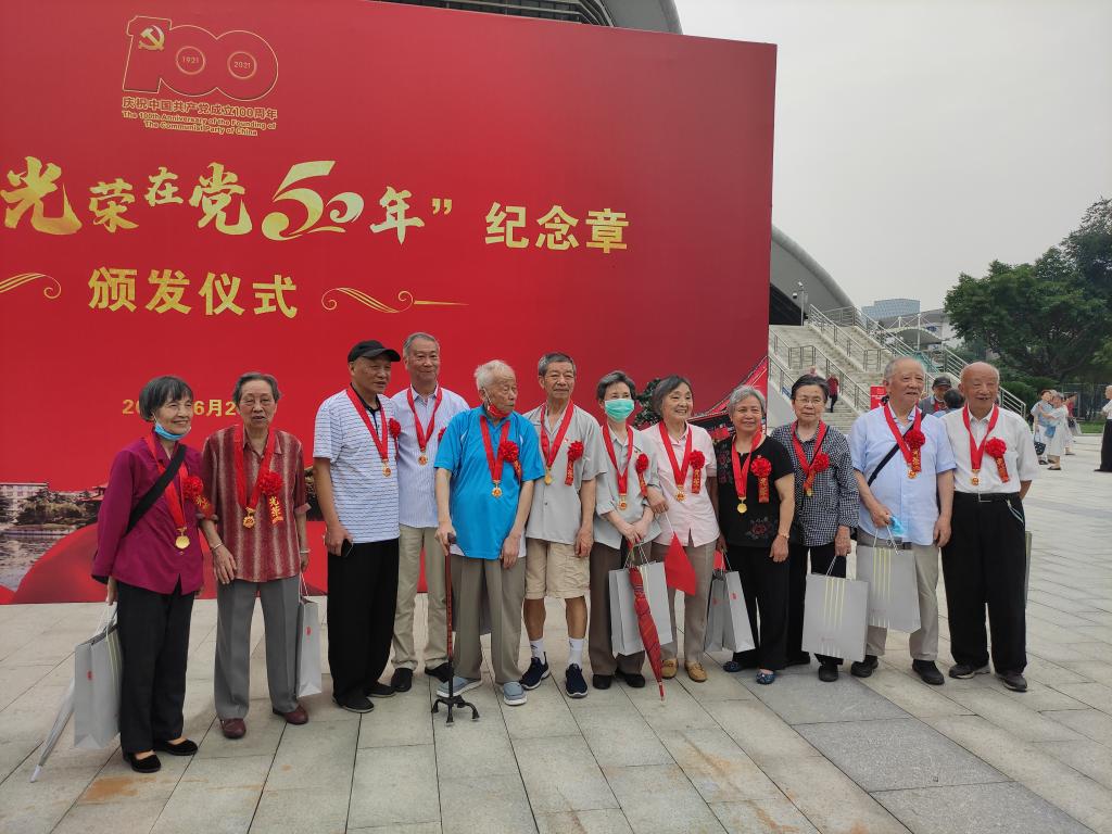 在建党100周年之际,党中央向党龄达到50年、一贯表现良好的党员颁发“光荣在党50年”纪念章。公司27名老党员荣获纪念章,他们中年龄最大的92岁,党龄最长的69年。