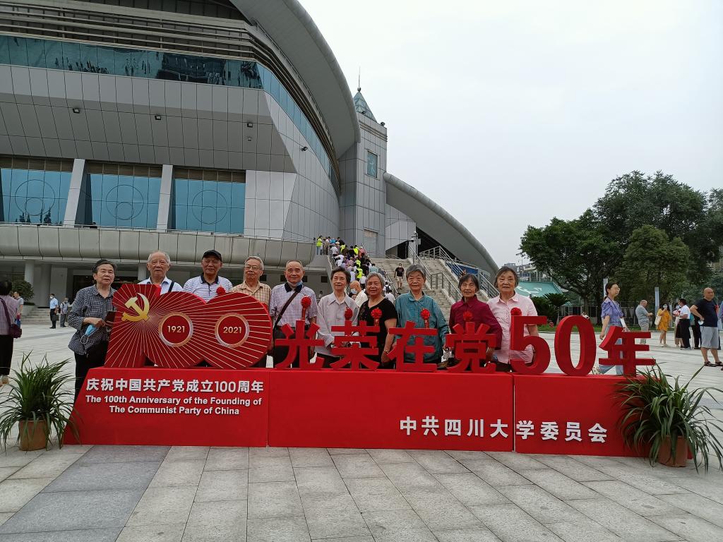 2021年6月23日,学校“光荣在党50年”纪念章颁发仪式在望江校区体育馆隆重举行。 “光荣在党50年”老党员代表,学院谢均书记以及10余名青年党员参加了颁发仪式。