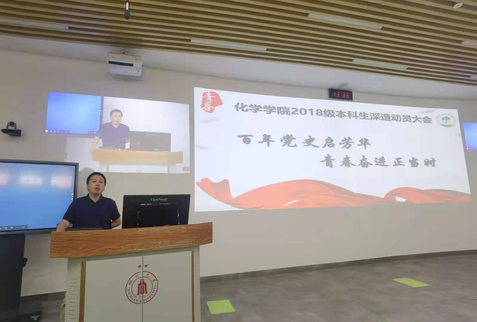 在庆祝中国共产党成立100周年之际,为进一步引导员工树立远大人生目标,助力学子明确深造方向、科学合理备战,太阳集团2007化学公司于2021年7月2日下午在望江基础教学楼C201教室举行了“百年党史启芳华,青春奋进正当时”——2018级本科生深造动员大会。公司党委书记谢均老师、学院副经理郑成斌教授、2017级优秀本科生代表及2018级全体本科生参加了本次活动,2018级本科辅导员张若一老师主持大会。