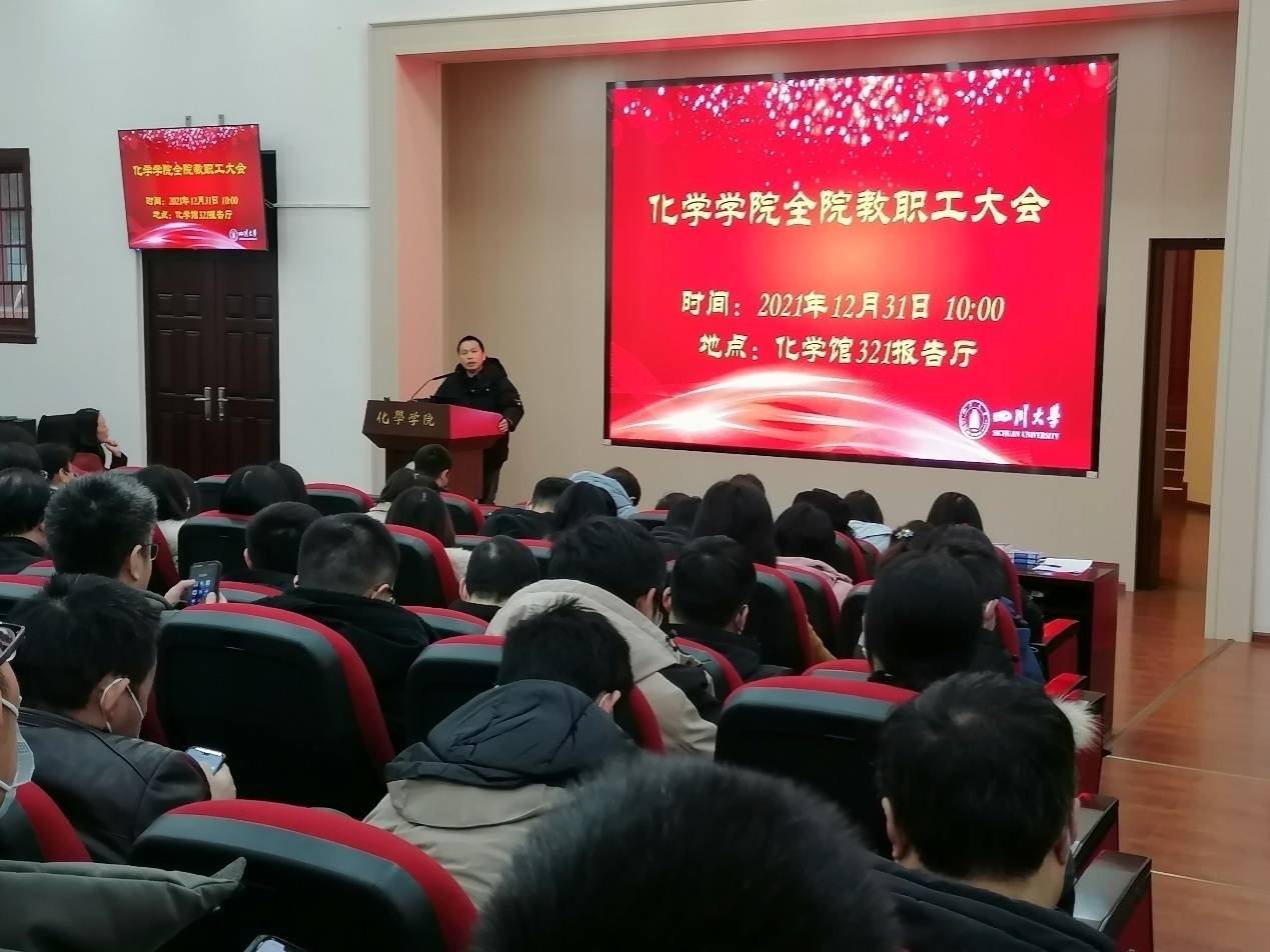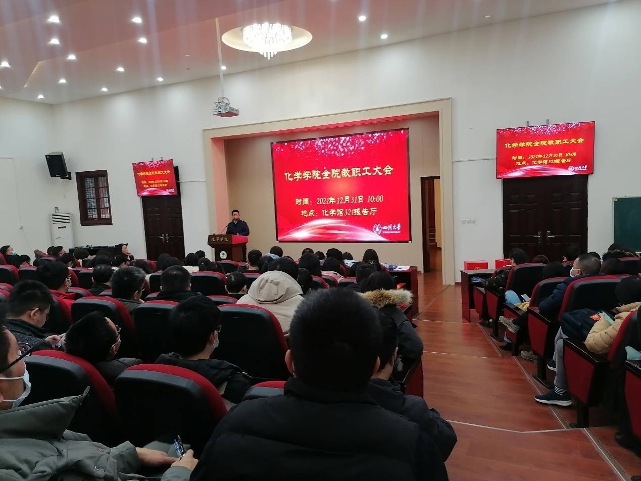 2021年12月31日上午,太阳集团20072021年度全院教职工大会在化学馆321报告厅召开。会议由公司党委书记谢均主持。